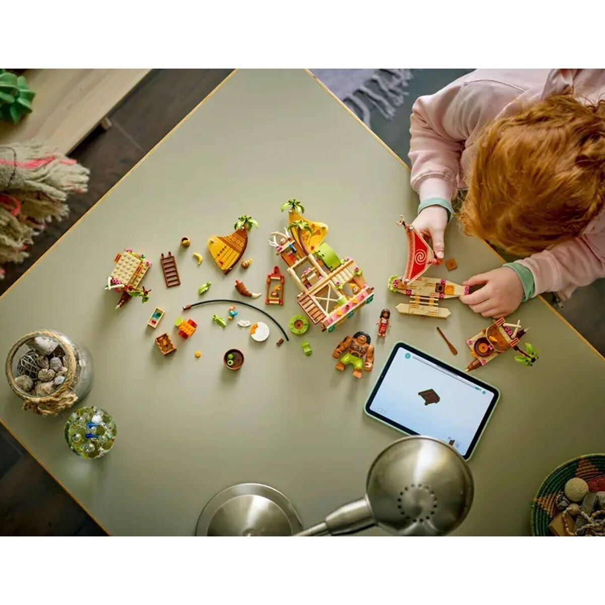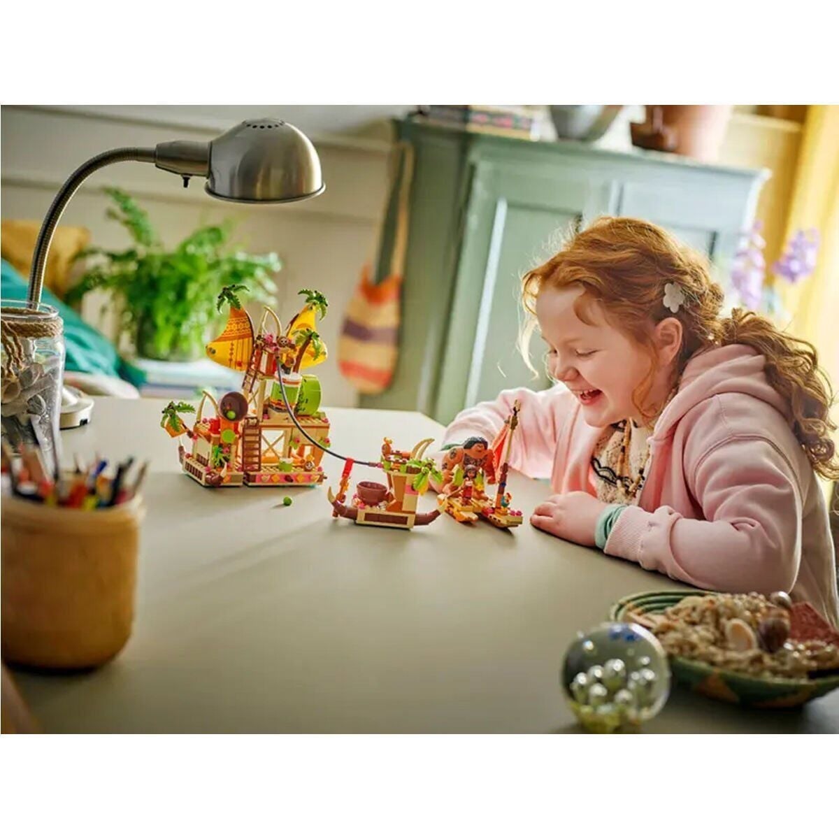 - Moana gemisi yapım seti – 3 bölümü, kayma halatı ve saklama alanı olan daha küçük, 2 gövdeli bir kanosu olan büyük bir geminin yanı sıra tavuk Heihei, Moana, Maui, Kotu ve 5 LEGO® ǀ Disney karakteri içerir