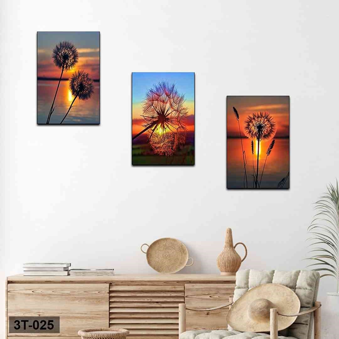 3 Parça Gün Batımı Karahindiba Mdf Tablo - 3T-025 30X40