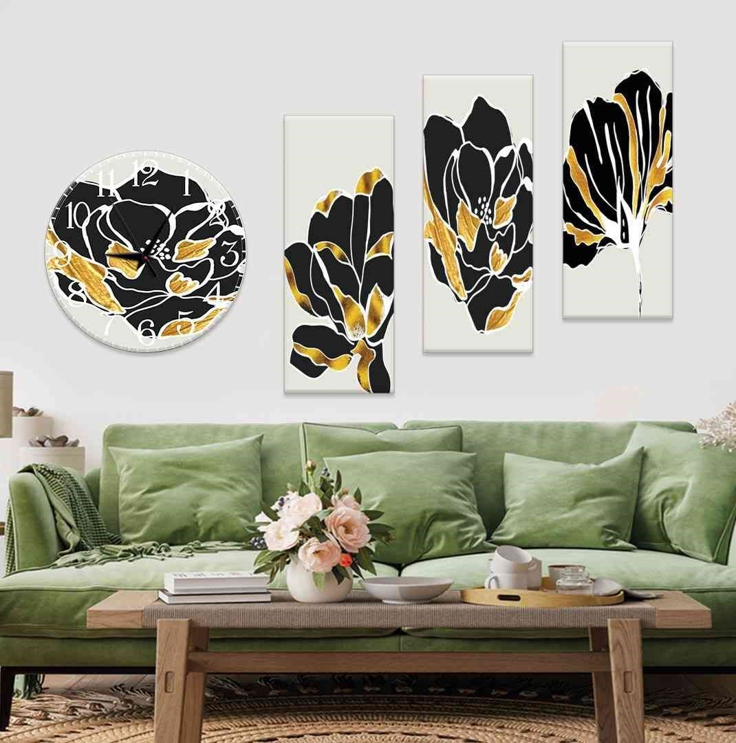 Evimona 4 Parça Çiçek Temalı Mdf Saatli Tablo Ds-0147