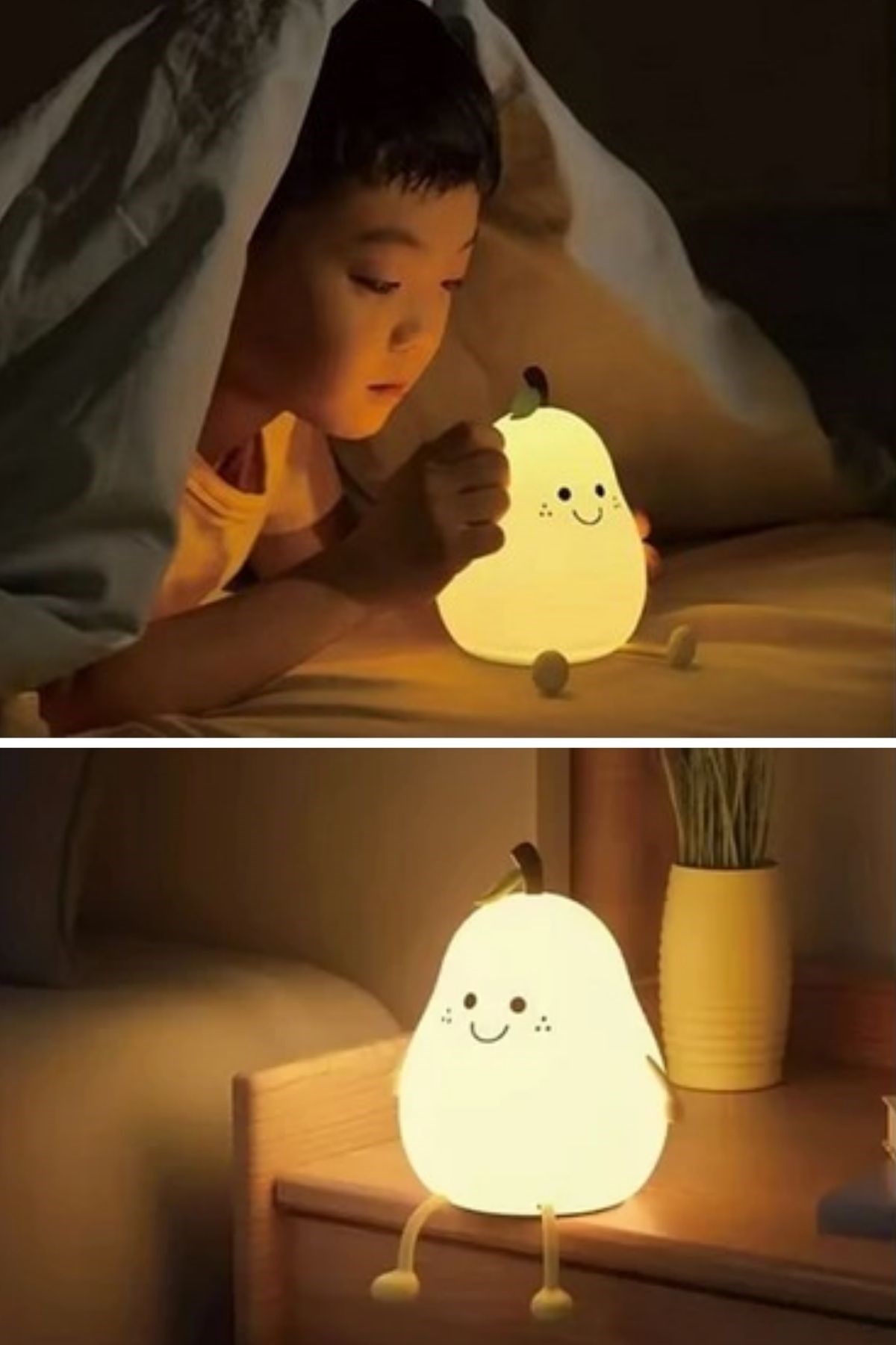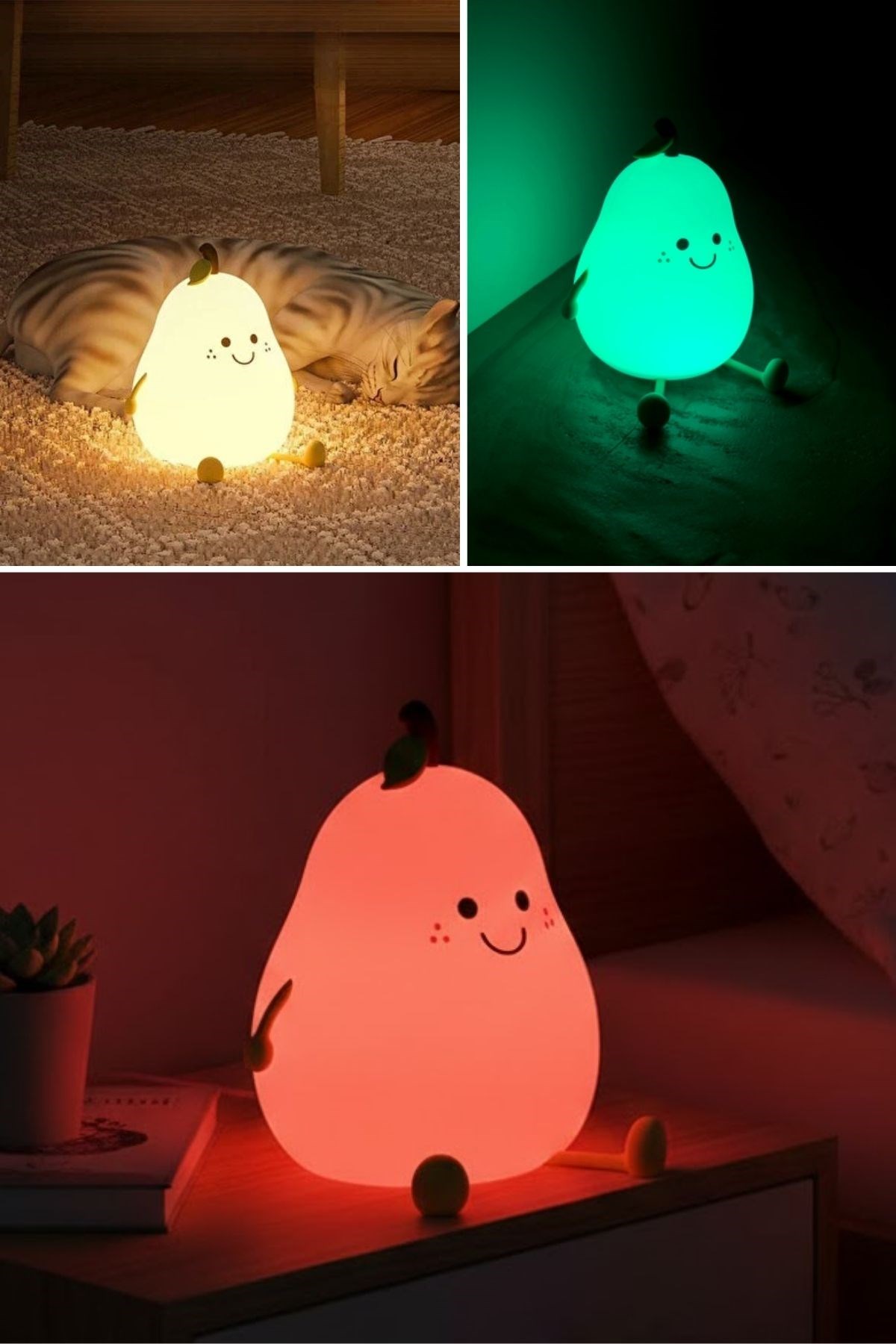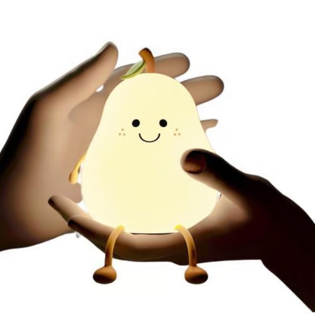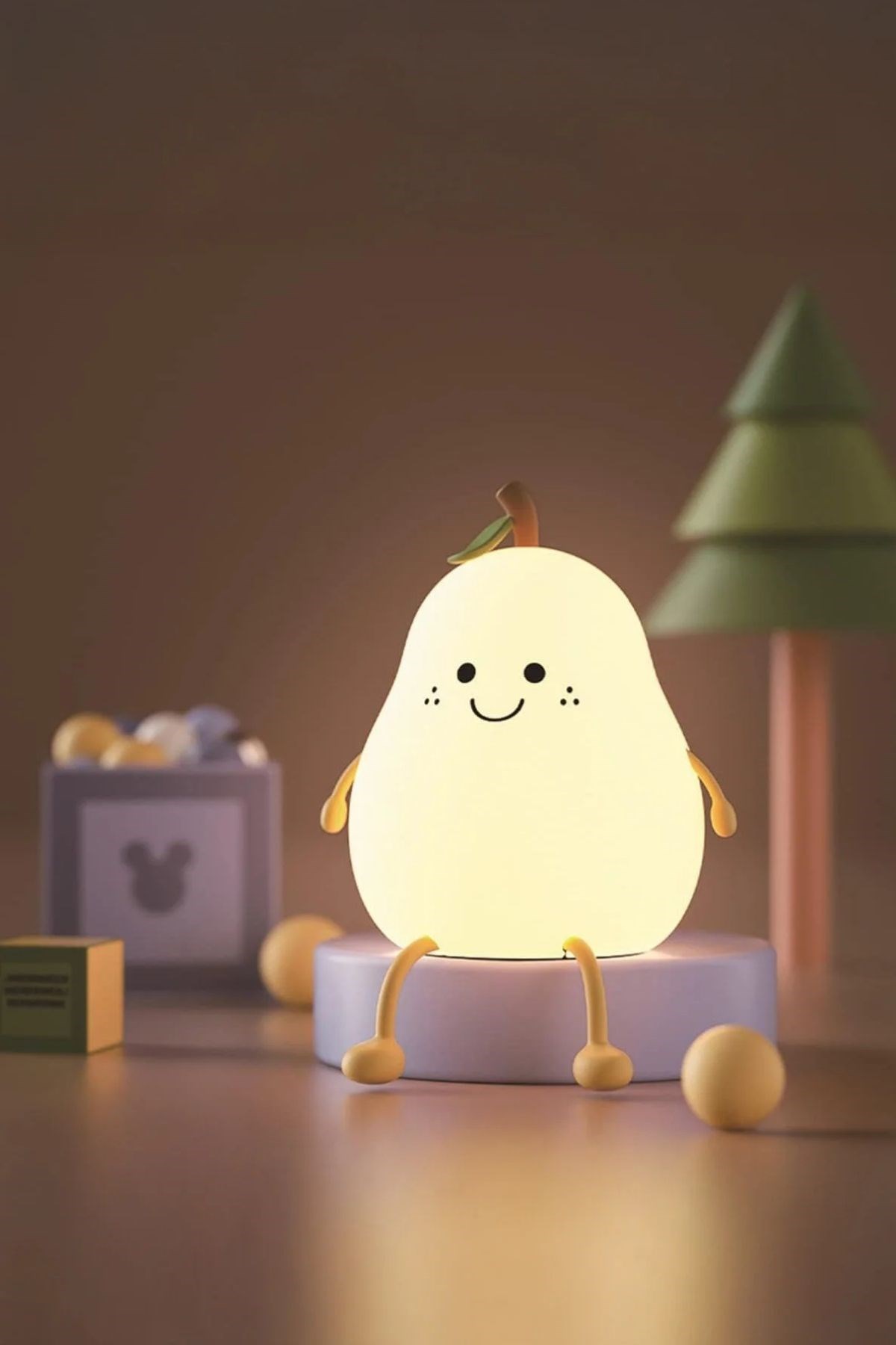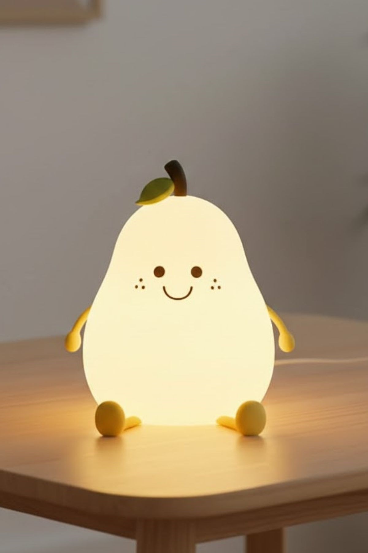 Armut Figürlü Pofuduk LED Gece Lambası, sevimli armut tasarımı ve yumuşak dokulu gövdesiyle yaşam alanlarınıza sıcak ve huzurlu bir atmosfer kazandırır. Göz yormayan LED ışığı sayesinde çocuk odaları, yatak odaları, komodinler ve masaüstleri için ideal bir gece aydınlatması sunar.