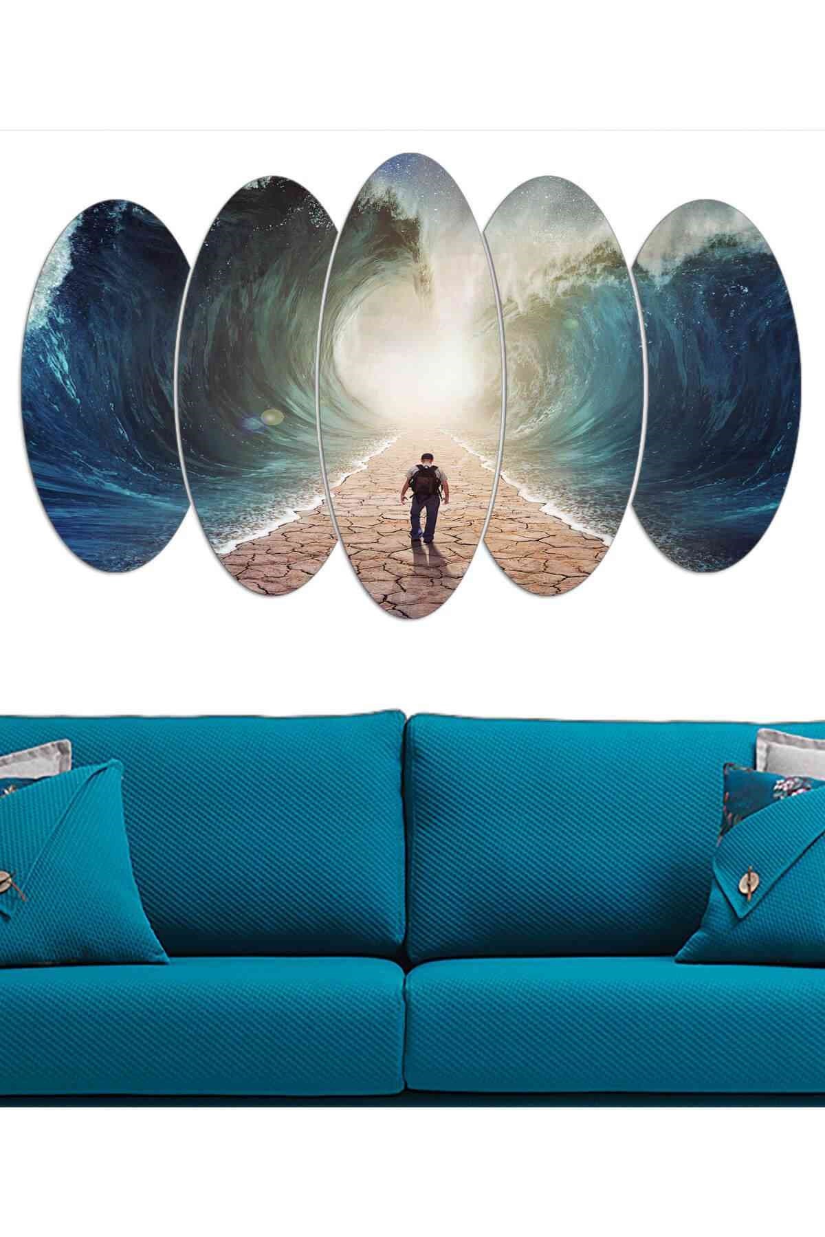 5 Parça Doğa Manzarası Tasarım Saatli Mdf Tablo