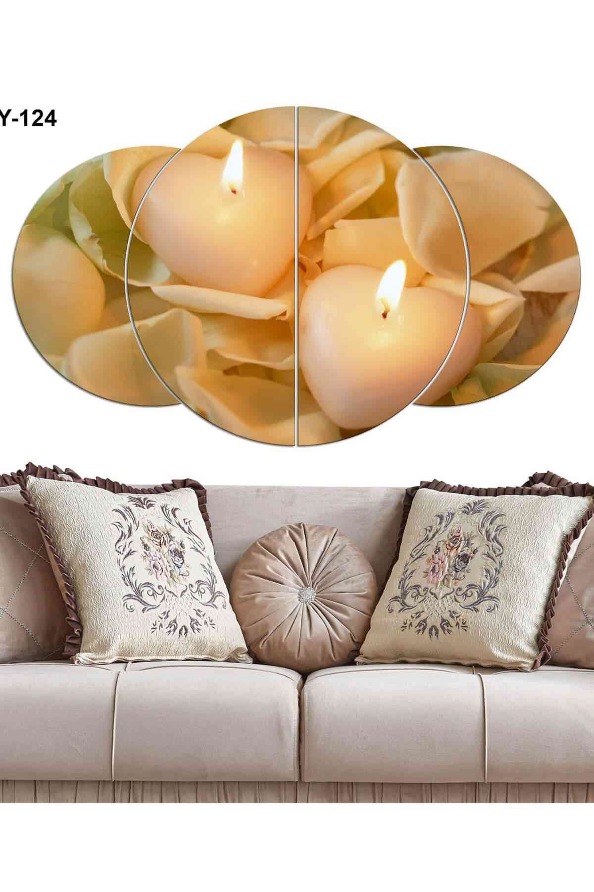 5 Parça Illüstrasyon Çiçek Tasarım Saatli Mdf Tablo
