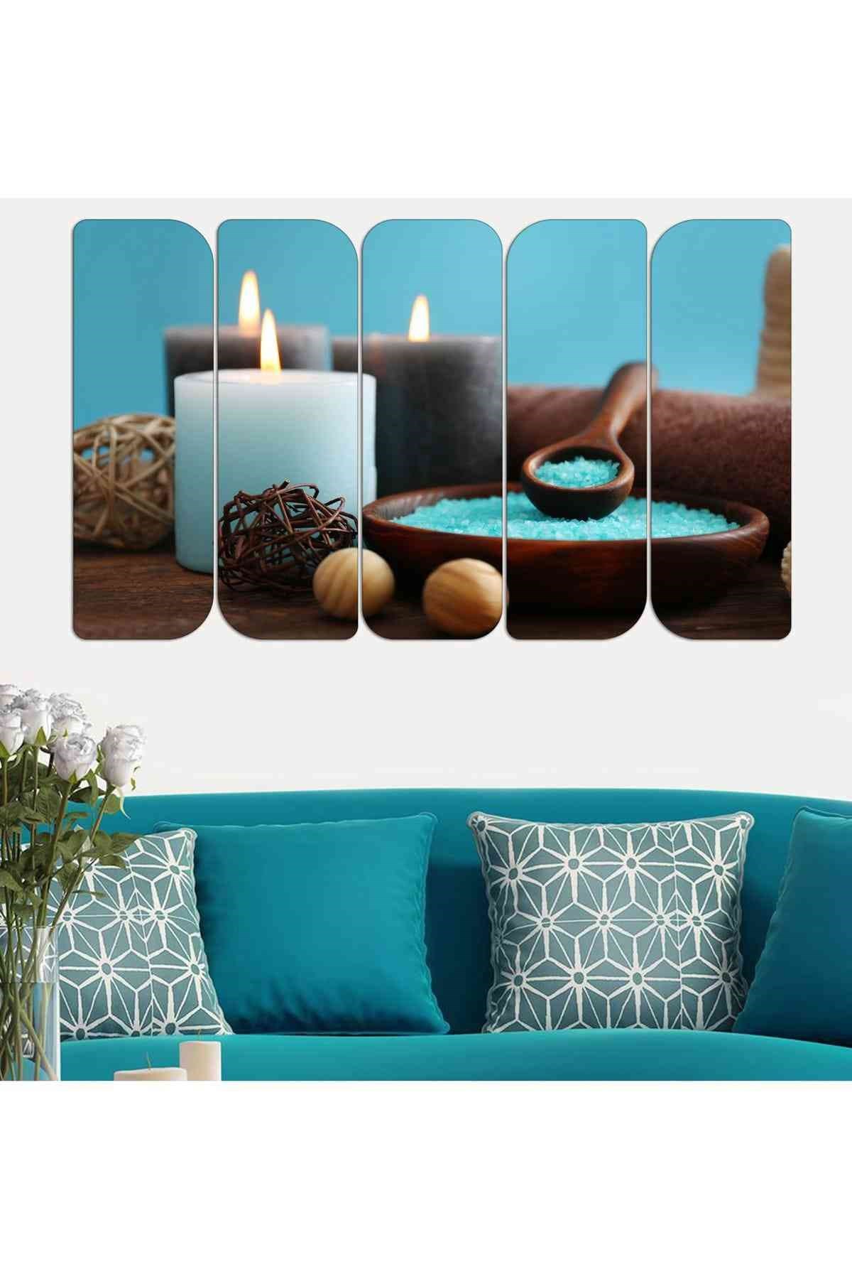 5 Parça Kabe Temalı Tasarım Saatli Mdf Tablo