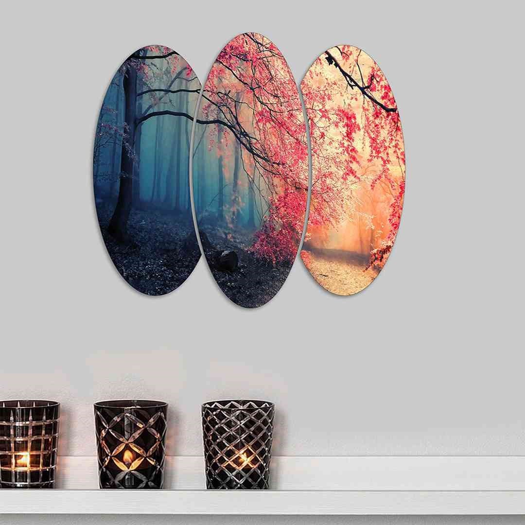 5 Parça Yağlı Boya Şehir Caddesi Tasarım Saatli Mdf Tablo