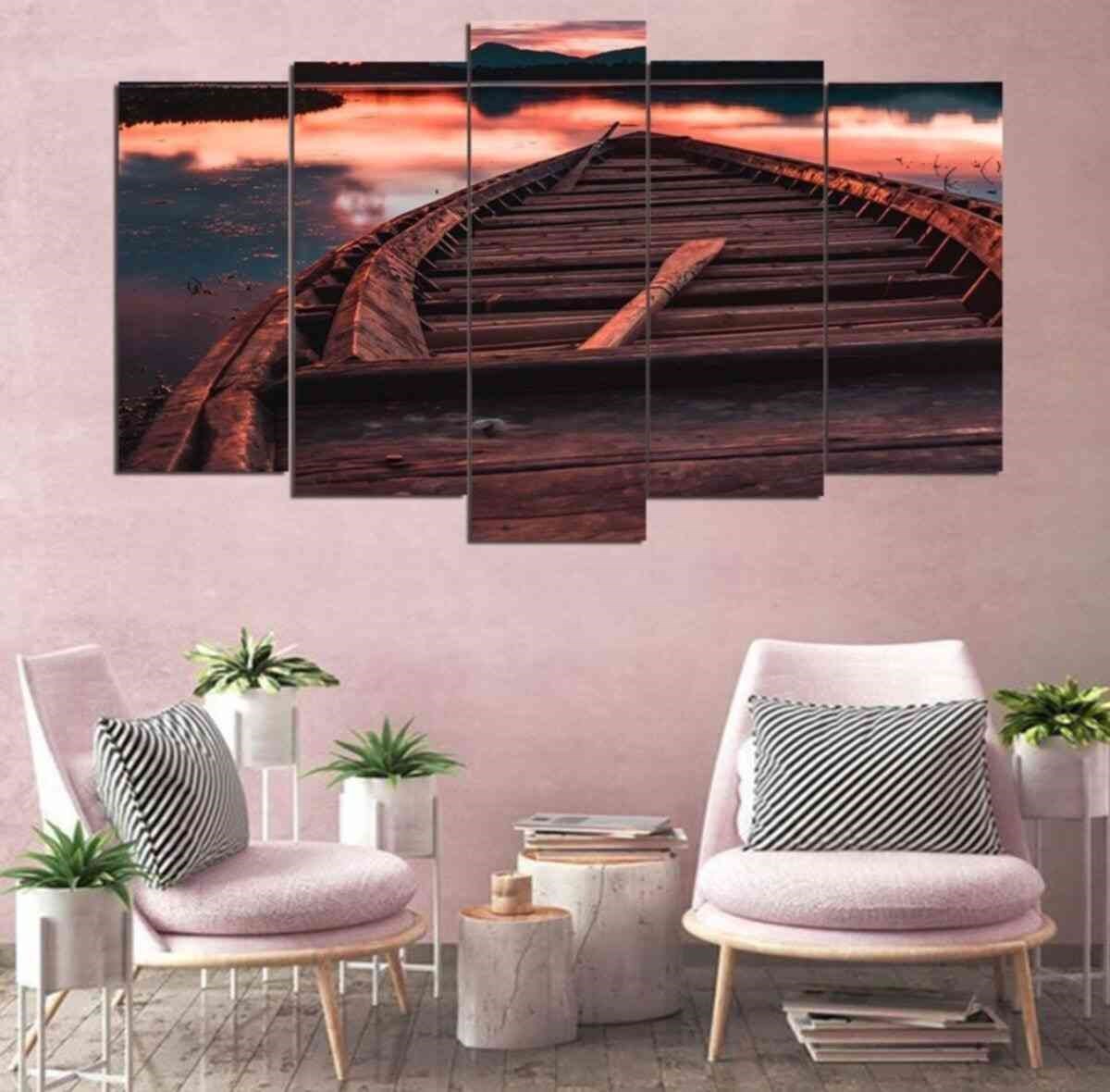5 Parça Yağlı Boya Tasarım Saatli Mdf Tablo