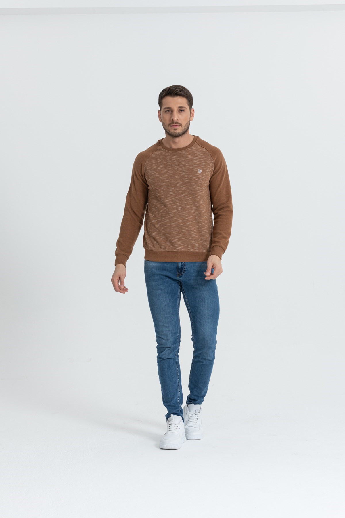 Kamel Erkek Standart Fit Bisiklet Yaka Normal Kesim Çizgi Desenli Sweatshirt