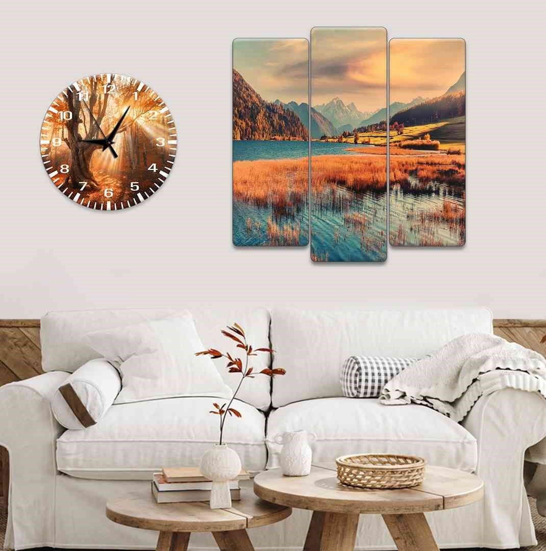 Evimona 4 Parça Doğa Temalı Mdf Saatli Tablo Ds-0114