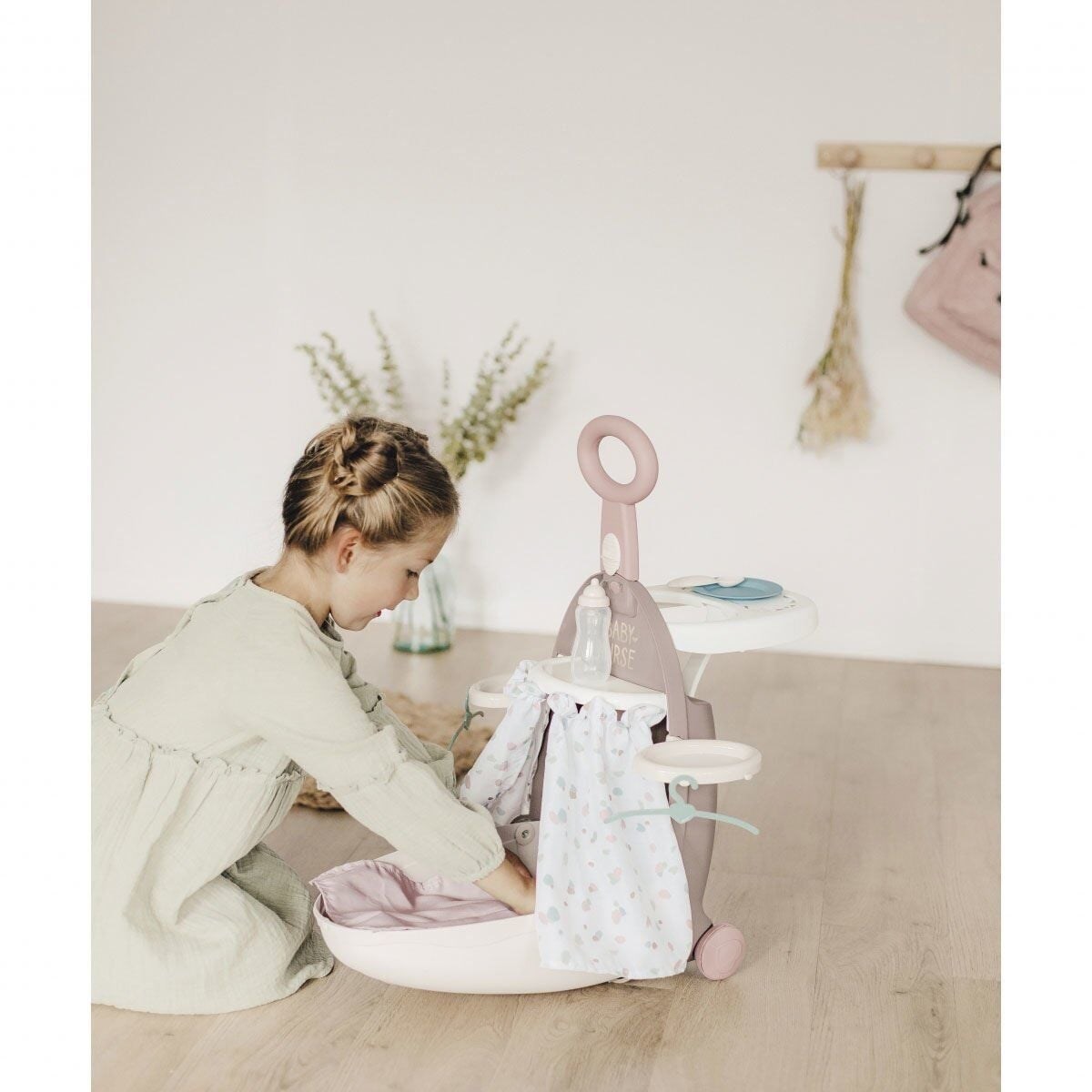 Küçük çocuğunuz, bebeğini beslemek için geri çekilebilir rafın koltuğuna oturtabilir. 1 tabak, 1 kaşık ve 1 biberon dahildir.