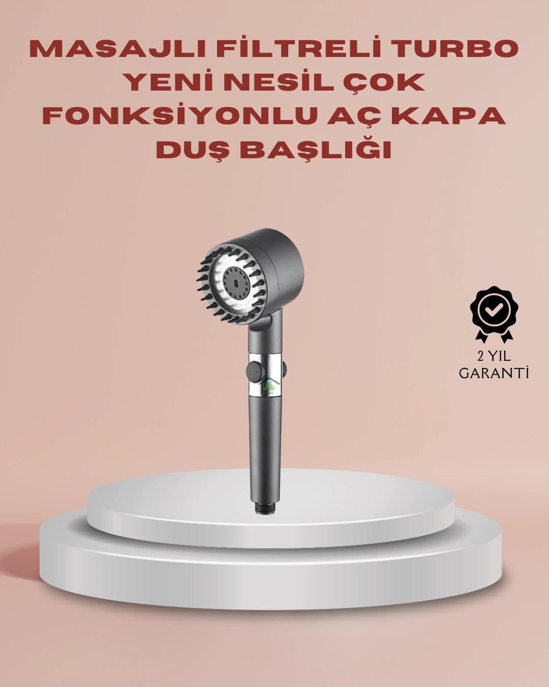 Yeni Nesil Masajlı Turbolu Çok Fonksiyonlu Filtreli Duş Başlığı