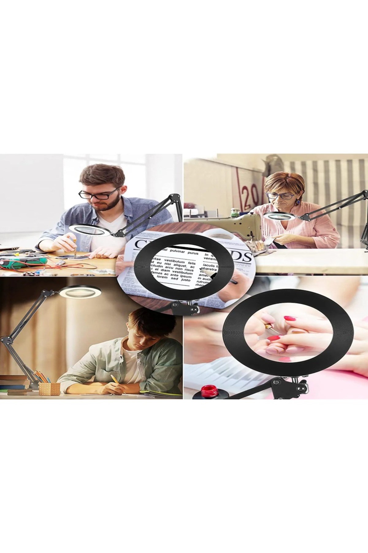 1; 8x Büyüteç Cam:; Bu masalambasının bir özelliği, 8 kat büyüteç cam içermesidir; Bu özellik, detaylıincelemeler veya küçük yazıları daha net görmek için kullanışlı olabilir; 2; Salıncak Kolu ile Esnek:; Lambanın salıncakkolu sayesinde, ışığı istenen yöne çevirmek veya ayarlamak mümkündür; Esneklik,lambanın kullanıcı ihtiyaçlarına uyum sağlamasına yardımcı olur; 3; Kelepçe; On:; Lambanın masaüzerine sabitlenmesini sağlayan bir kelepçe sistemine sahiptir; Bu özellik,lambanın masa üstünde yer kaplamadan kullanılabilmesine olanak tanır; 4; Kısılabilir Işıklı Büyüteç:; Lamba, ışıkşiddetini ayarlamak için kısılabilir bir özellik içerir; Bu sayedekullanıcılar, lambanın aydınlatma seviyesini ihtiyaçlarına göredüzenleyebilirler; 5; LED'ler ile Masa Işığı:; Masa lambası,enerji tasarruflu ve uzun ömürlü LED ışıklar içerir; LED teknolojisi, parlak vehomojen bir ışık kaynağı sağlar; 6; 3 Renk Modları:; Lamba, 3 farklırenk modu sunar; Kullanıcılar, beyaz ışık, doğal ışık ve sıcak ışık gibi farklırenk tonları arasında seçim yapabilirler; Bu özellik, lambanın ortamdaki ışıktonunu kişisel tercihlere göre uyarlamak için ;;