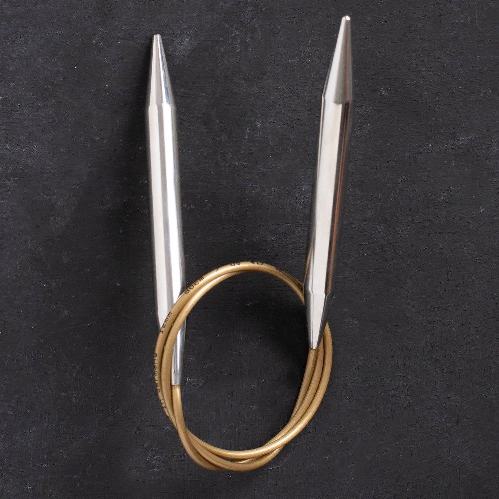 Addi Klasik Misinalı Şişler altın rengi misinasına ve pirinç uçlara sahiptir. Şişlerin hafif kaygan yapısı daha kolay örgü örme imkanı sunar.