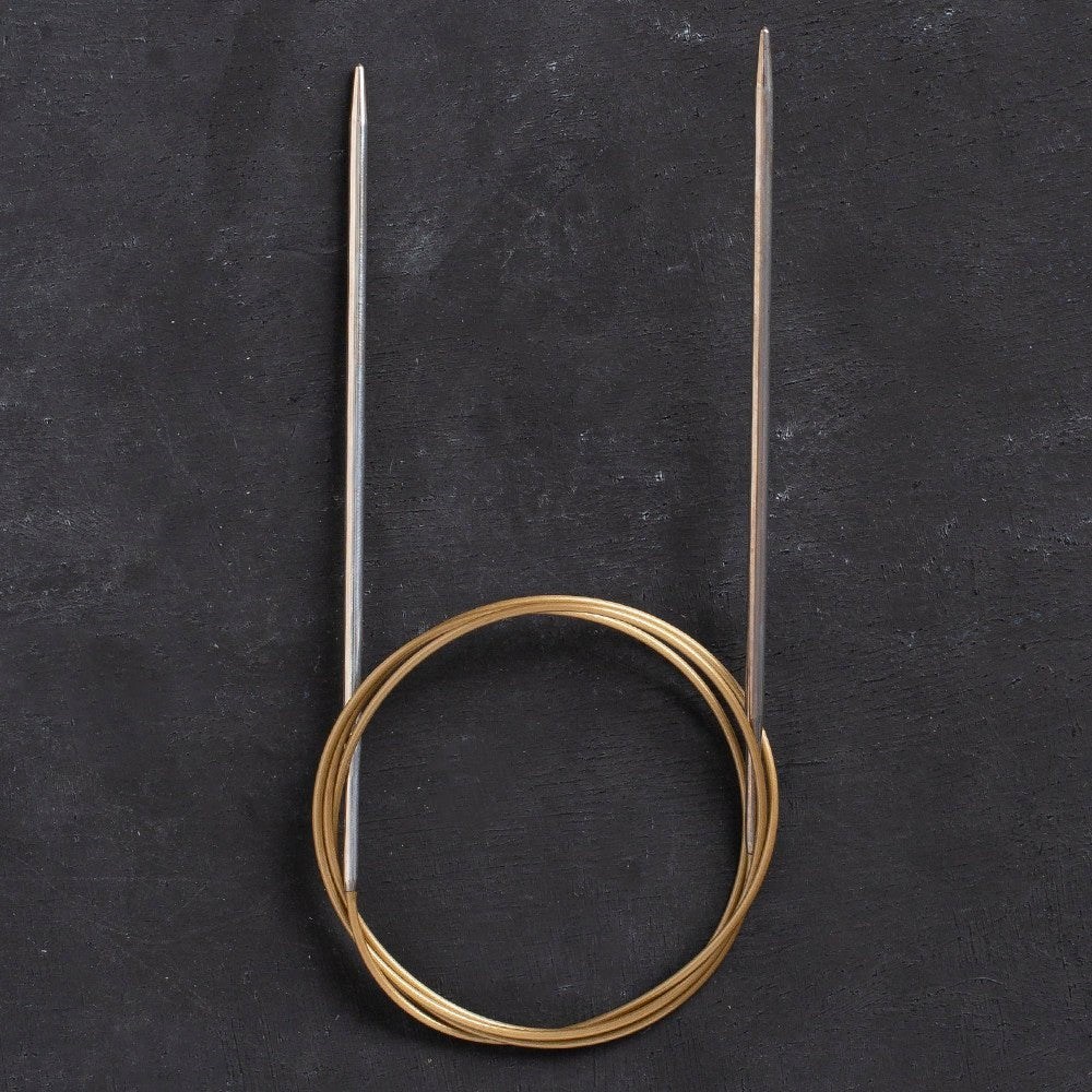 Addi Klasik Misinalı Şişler altın rengi misinasına ve pirinç uçlara sahiptir. Şişlerin hafif kaygan yapısı daha kolay örgü örme imkanı sunar.