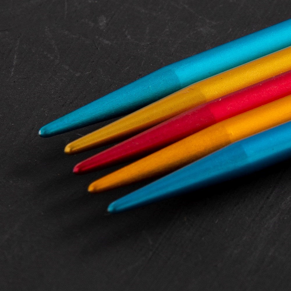 Addi Colibris çorap şişlerinin bir ucu sivri, diğer ucu daha küttür.