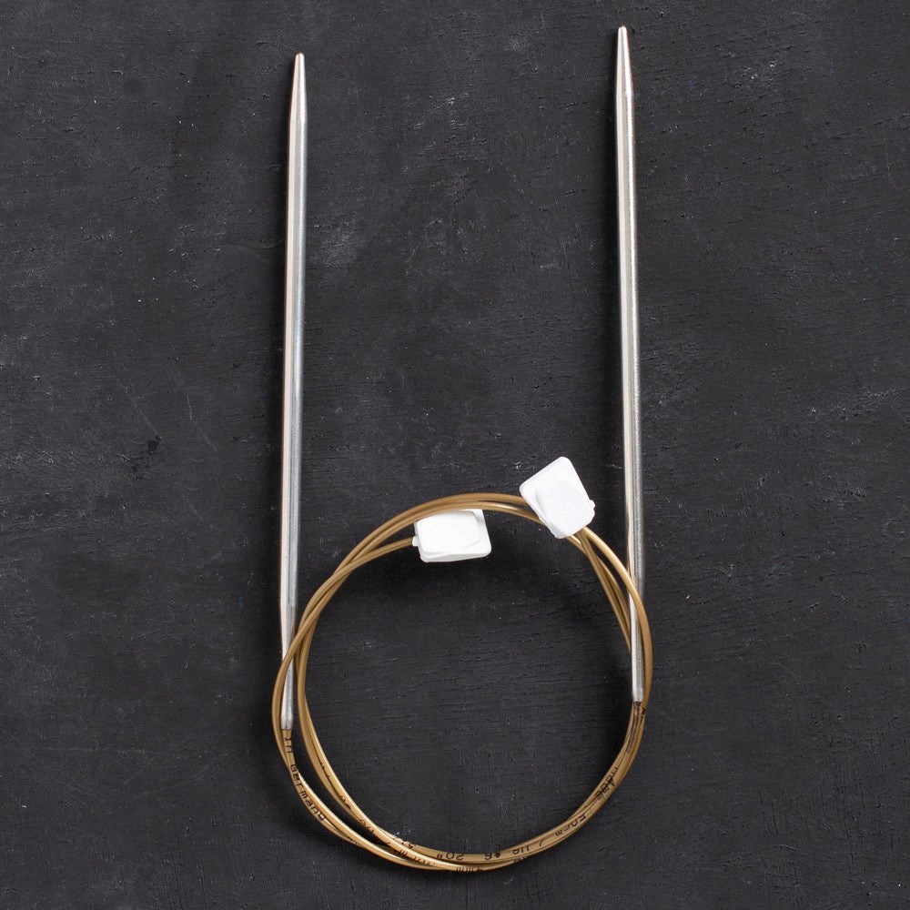 Klasik düz örgü şişi yerine esnek kordonlu düz örgü şişi kullanarak büyük projelerde daha kolay örebilirsiniz. Ayrıca misinalı şişlerdeki sürekli kendi kendine dönmesi gibi problemlerden de kurtulmuş olursunuz.