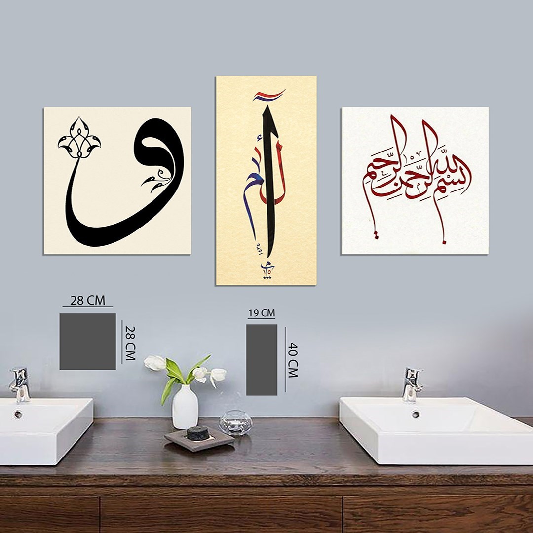 3 Parça Elif Vav Mdf Tablo - 3Yatay-544 30X40