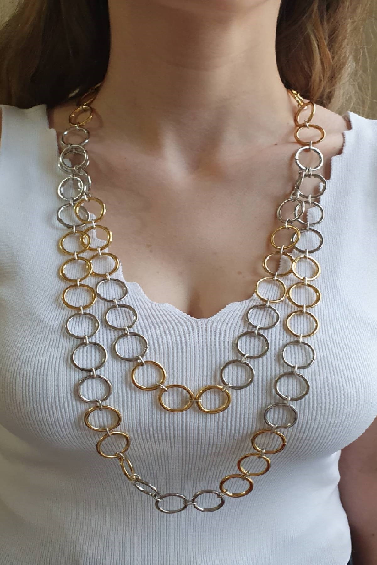Gümüş Kaplama ve Gold Kaplama İkili Halka Zincir Kolye