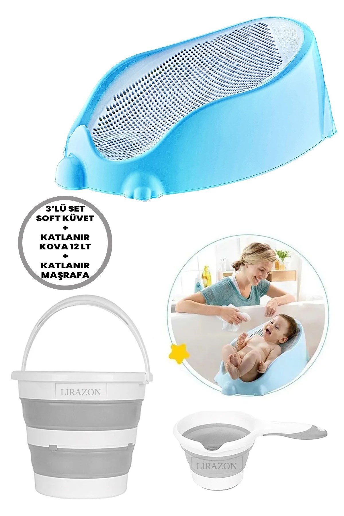 3'Lü Set Soft Bebek Banyo Küveti & Katlanır Su Kovası Maşrafa Set