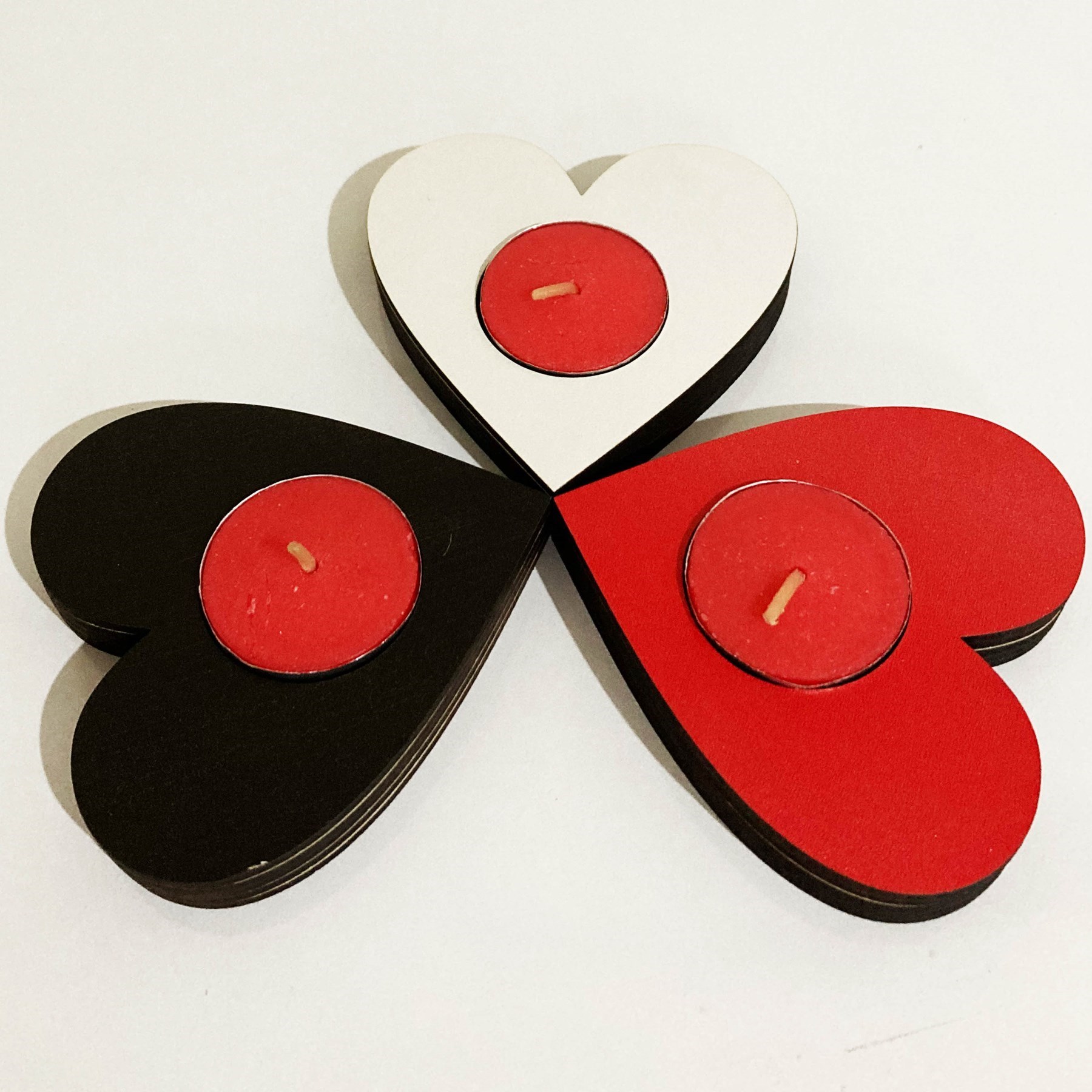 Ürün açıklaması: Mumluk ahşap mdf malzemeden yapılmıştır. Kırmızı,siyah ve beyaz renklerdedir. 9,5x9 cm ebat ve x1,5 cm yüksekliktedir. Üzerine uvbaskı uygulanmıştır. Hediyeniz olan kokulu tealight mumlar dört saatyanmaktadır.