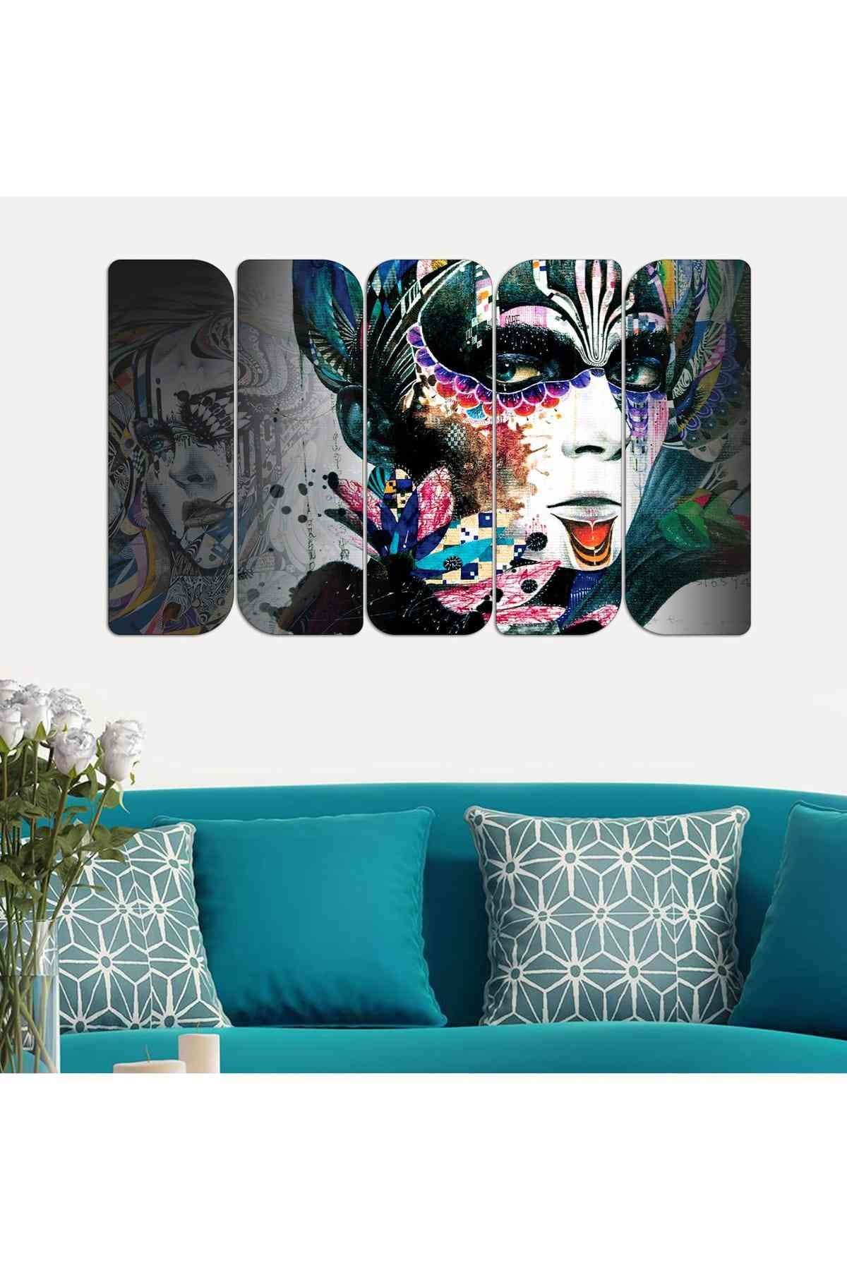 5 Parça Tramvay Temalı Saatli Mdf Tablo