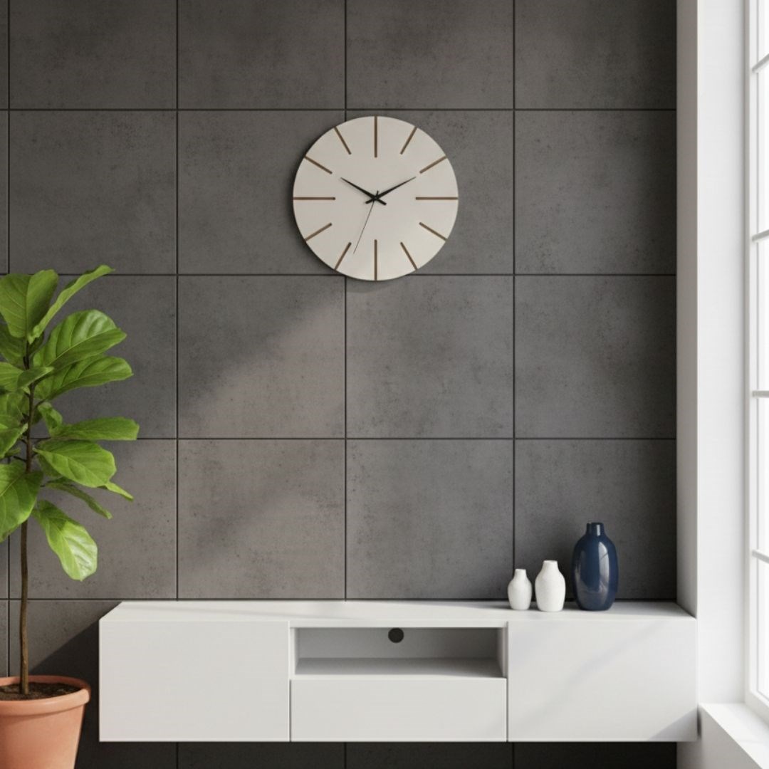 Ahşap Minimal Dekoratif Duvar Saati - 33x33 Cm Krem
