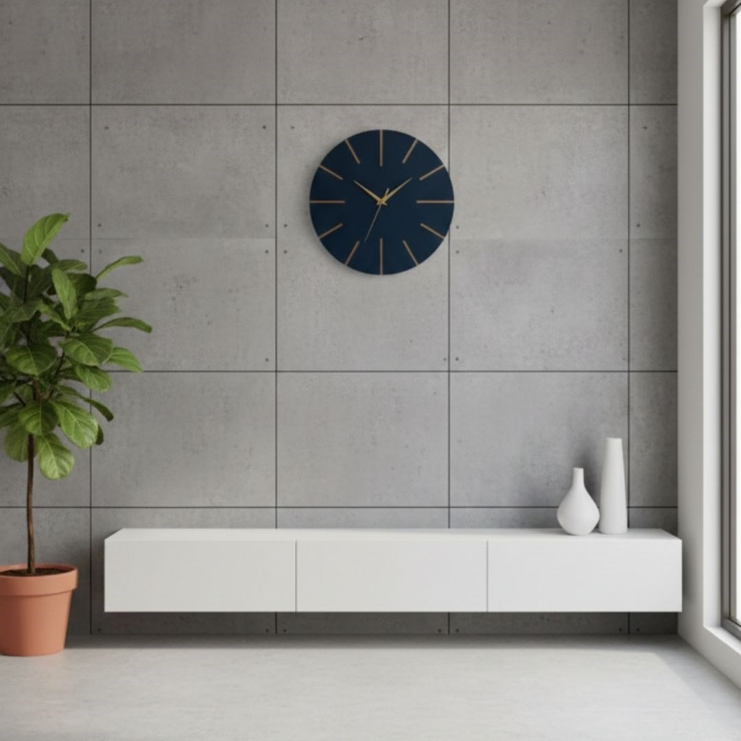 Ahşap Minimal Dekoratif Duvar Saati - 33x33 Cm Lacivert