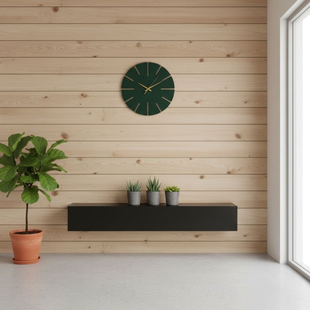 Ahşap Minimal Dekoratif Duvar Saati - 33x33 Cm Petrol Yeşili