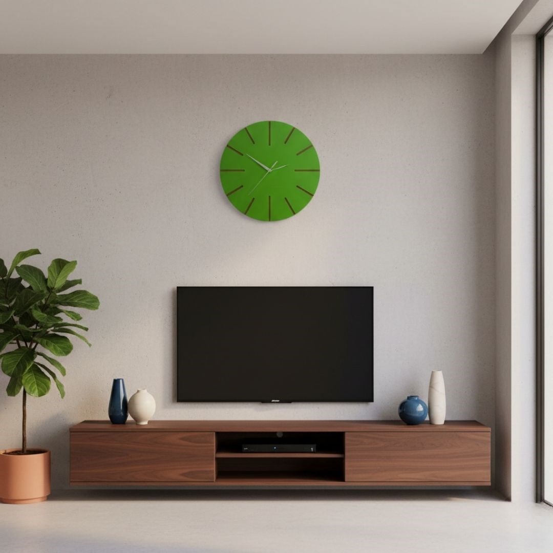 Ahşap Minimal Dekoratif Duvar Saati - 33x33 Cm Yeşil