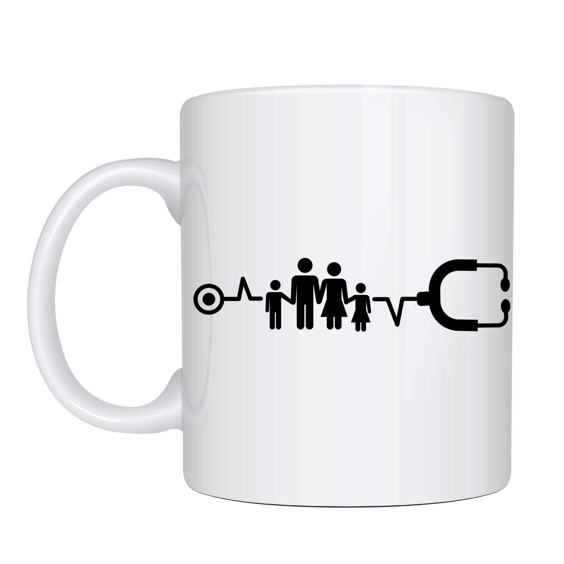Aile ve Kalp Ritmi Tasarımlı Porselen Kupa MODEL 171 – Stetoskop Temalı Sağlık Çalışanı Kahve Kupası – Doktor ve Hemşire Hediyesi