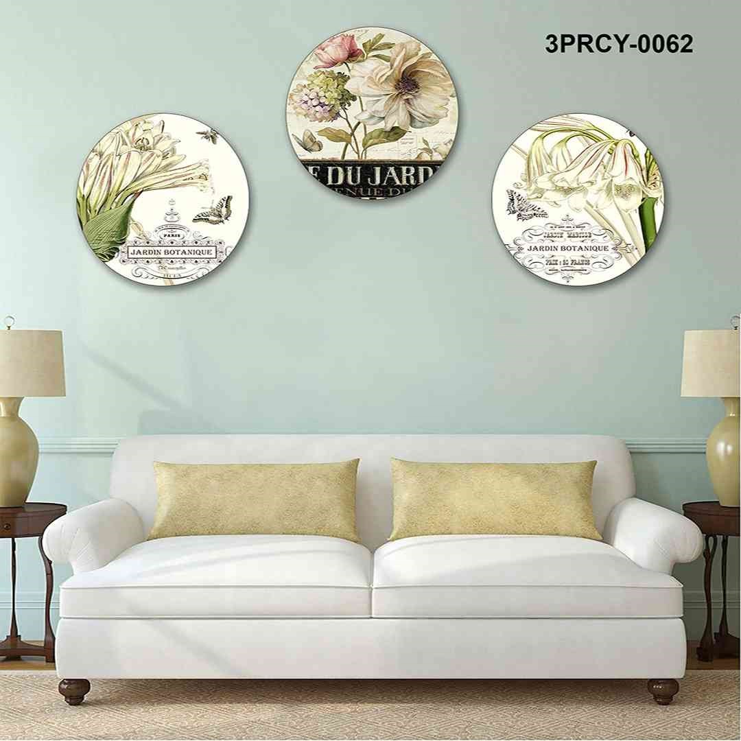 3 Parça Mdf Tablo Dekoratif Çizim Çiçek Desenler - T-3Prcy-0062 30X30