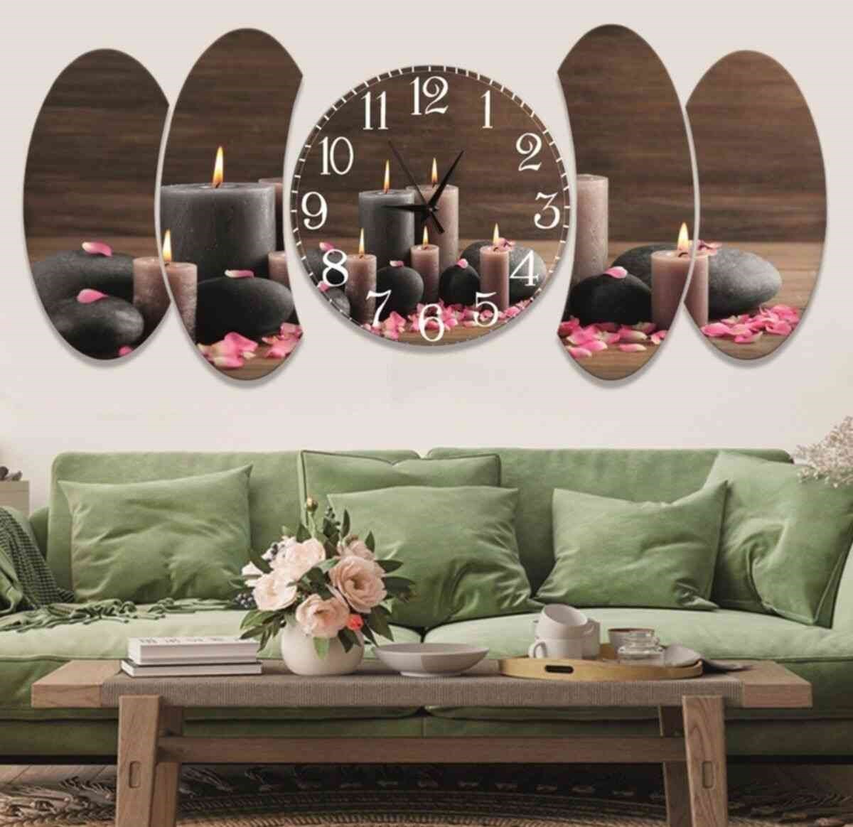 5 Parça Mum Tasarım Saatli Mdf Tablo