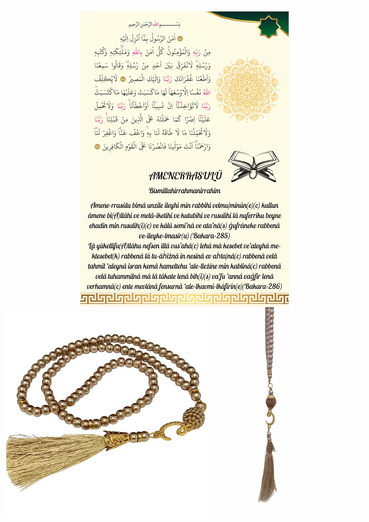 Namaz Tesbihi Vavlı 99'lu Cam İncili Amenerrasulü Dua Kartı İle Süt Kahve Renk Hediyelik