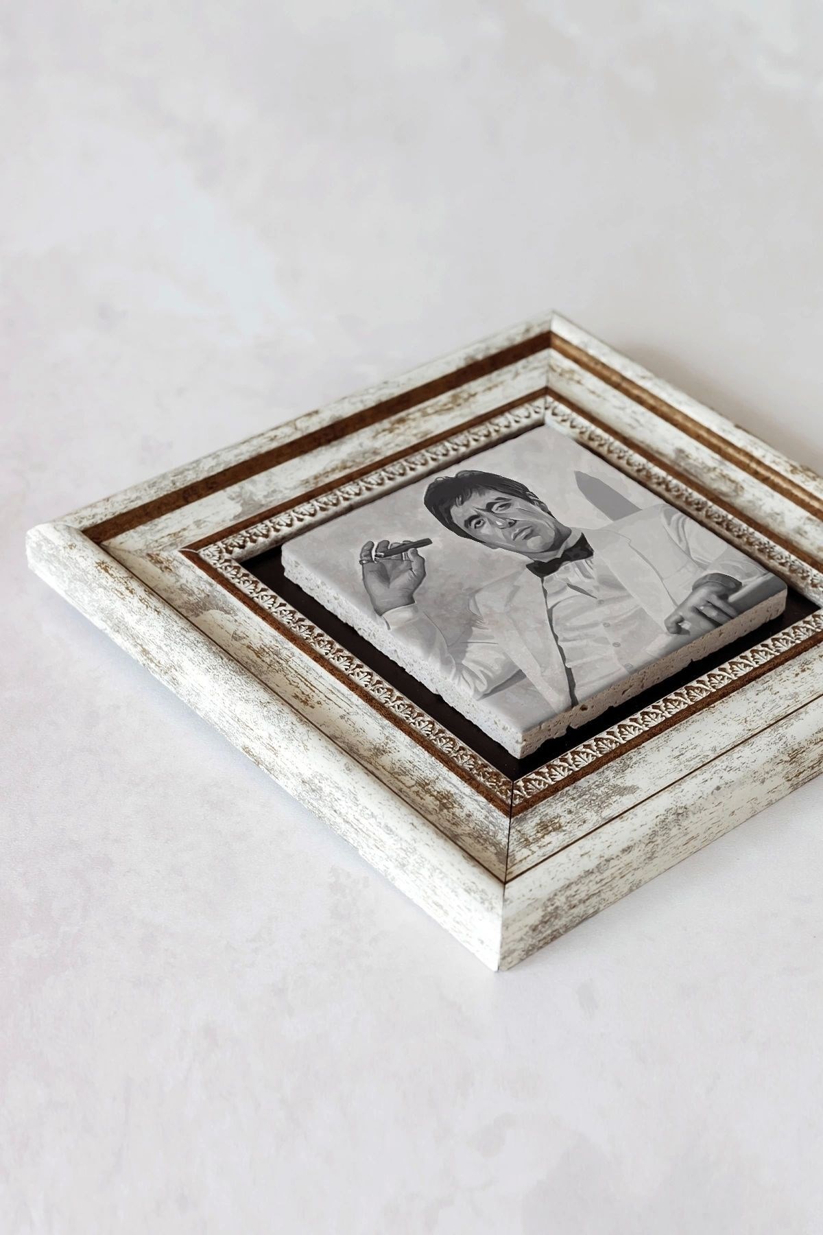 Ürün hakkında: Ölçüleri: 20 cm x 20 cm'dir. ; Kalınlık :2,5 cm'dir. ; Ürünün arka tarafında askı aparatı bulunmaktadır. ; Kullanılan çerçeveler yüksek kaliteli, eskitme görünümlü kompozit malzemeden üretilmiştir. ; Taşların yüzeyindeki baskı teknolojisi özel olup sağlığa hiçbir zararı yoktur. ; Kullanılan malzeme dağdan çıkan gerçek taş oldugu için yüzeyinde belli oranda gözenek bulunması ve renginin krem renginin tonlarını barındırması normaldir kimyasal malzeme teması Yüzey deformasyona maruz kalabilir. ; Nemli bezle silinerek temizlenebilir. ; Isıya, suya ve neme dayanıklıdır. ; Kutu içeriği: Orijinal kutu içerisinde 1 adet çerçeveli taş duvar dekoru. ; 1 adet çerçeveli duvar dekoru ağırlığı: 250 gr çerçeve askısı ile duvara montajı yapılabilir.;