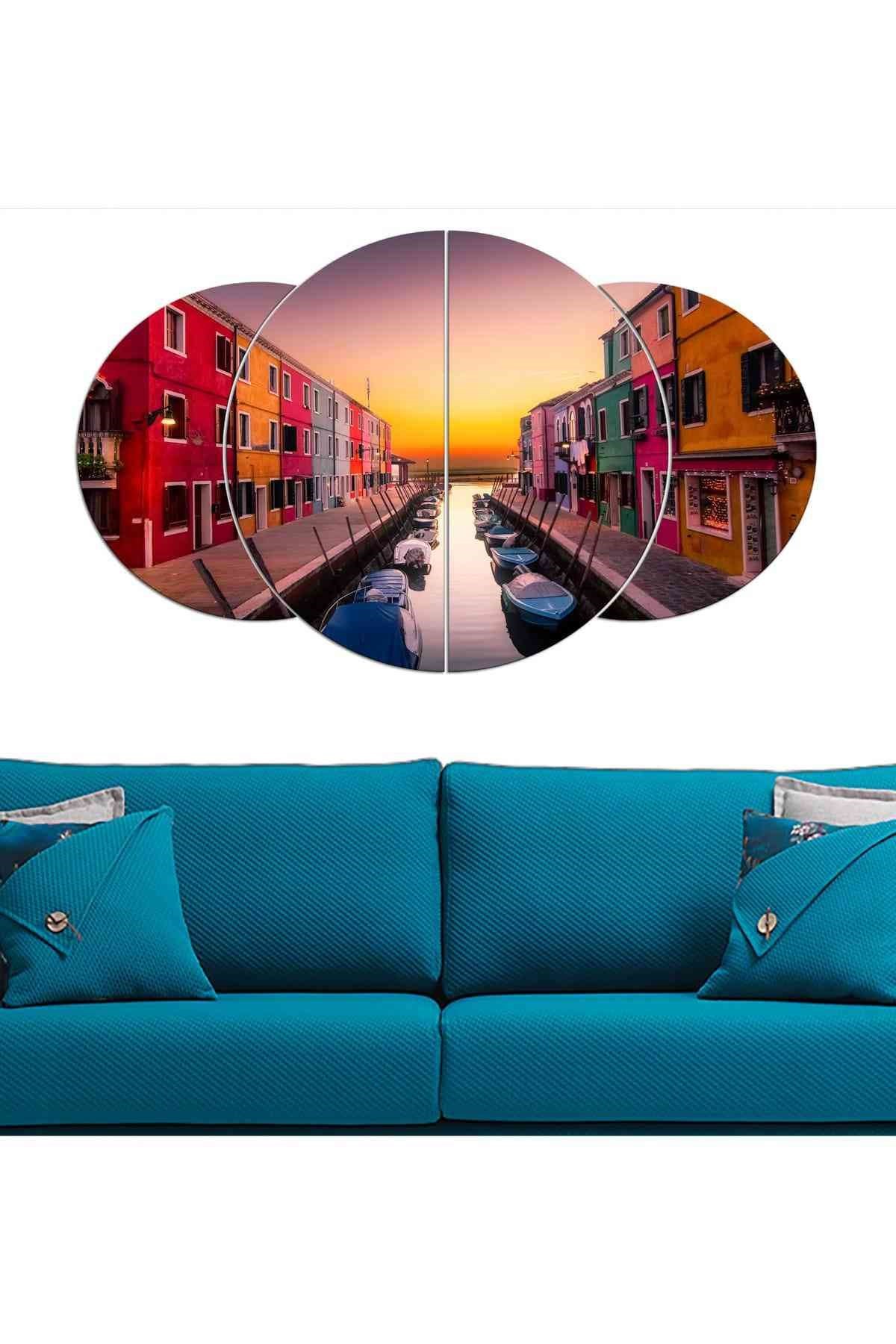 5 Parça Amsterdam Şehir Manzarası Saatli Mdf Tablo