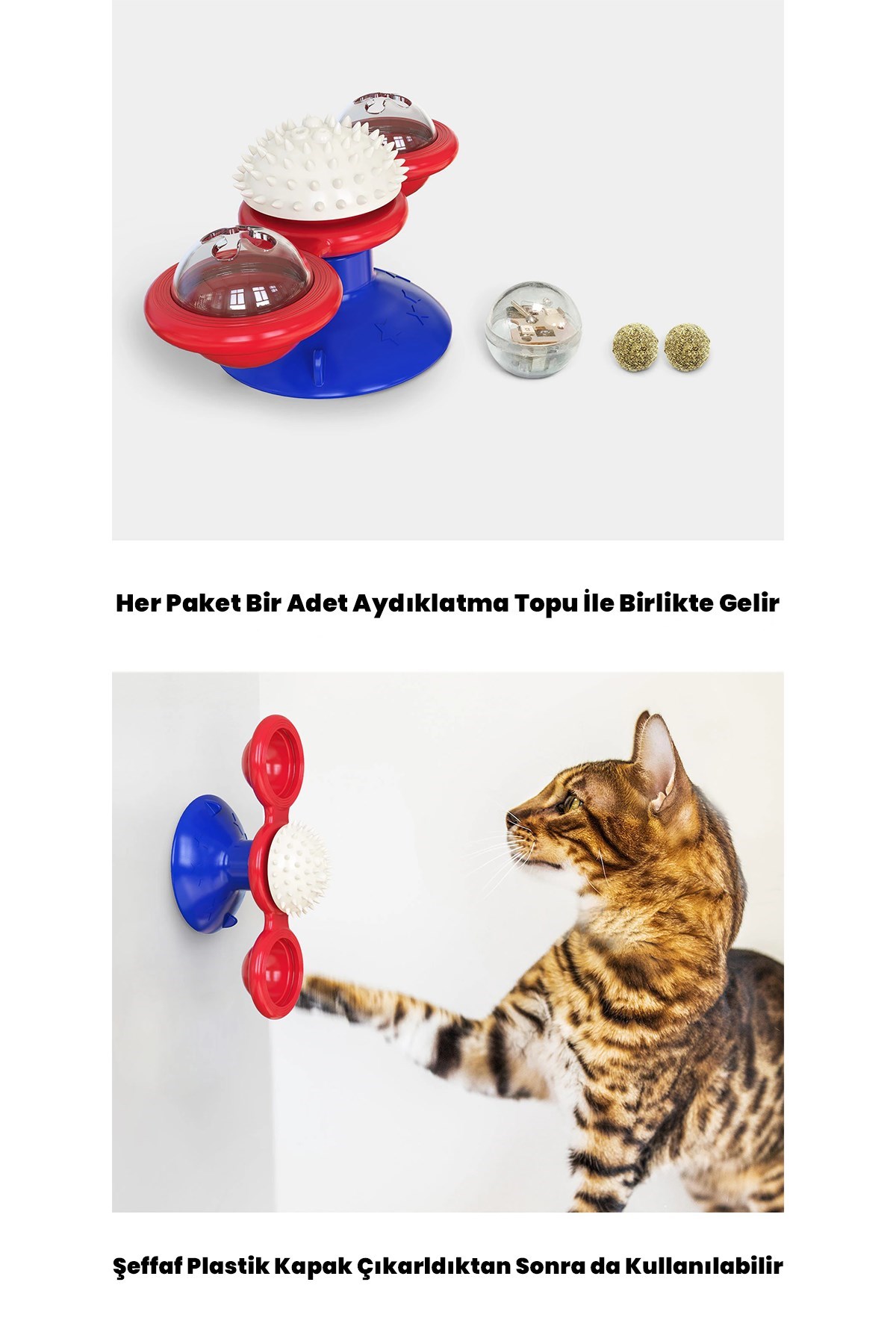 Vantuzlu 360 Derece Dönen Kedi Oyuncağı İnteraktif Fırıldak Işıklı Catnipli Kedi Oyun Topu