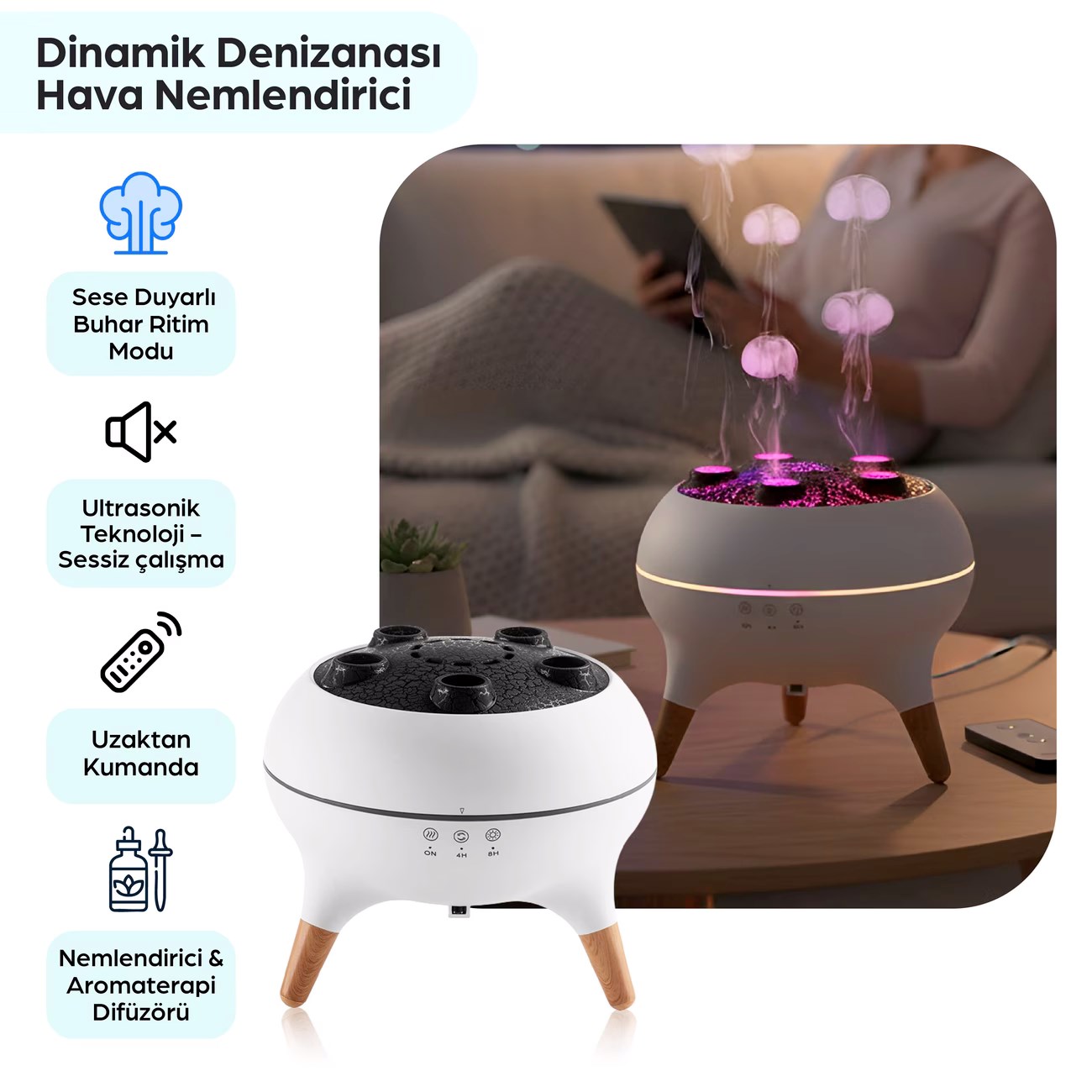 Nemlendirici ve aroma difüzör olarak kullanılabilen bu cihaz, havanın nem oranını dengelerken sevdiğiniz esansiyel yağları yayarak ortamda hoş bir koku bırakır. Sağlıklı ve konforlu bir yaşam alanı oluşturmak isteyenler için mükemmel bir seçimdir.
