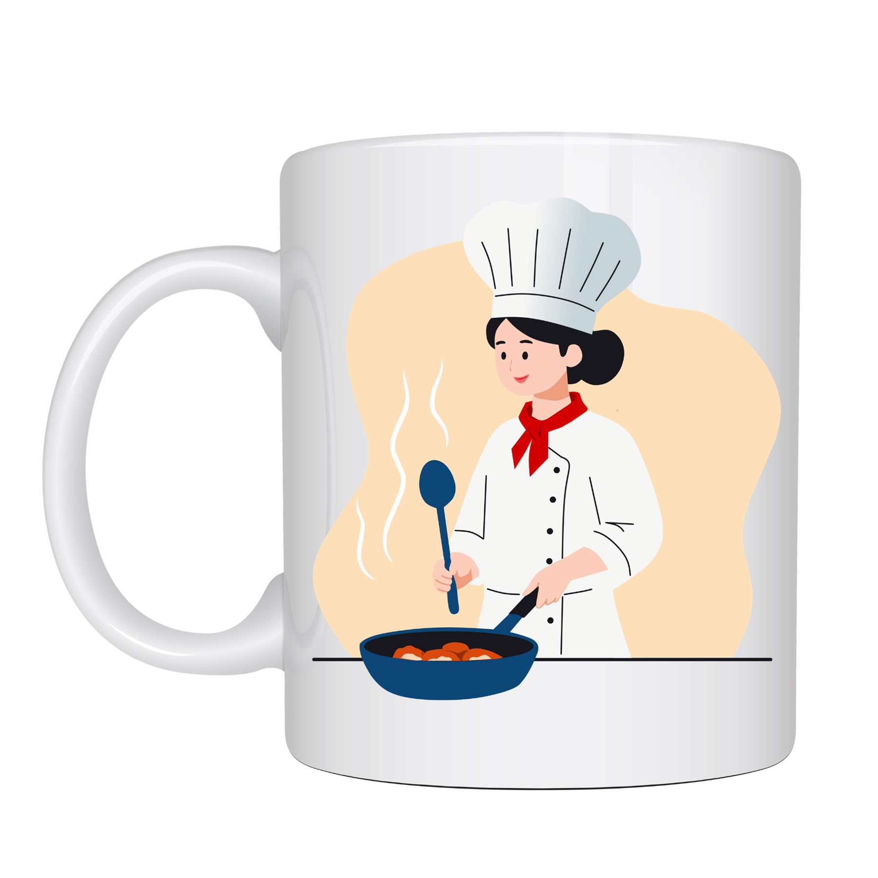 Aşçı Tasarımlı Porselen Kupa MODEL 164 – Şef Temalı Kahve Kupası – Aşçılara Özel Hediye Kupa – Mutfak Temalı Beyaz Kupa