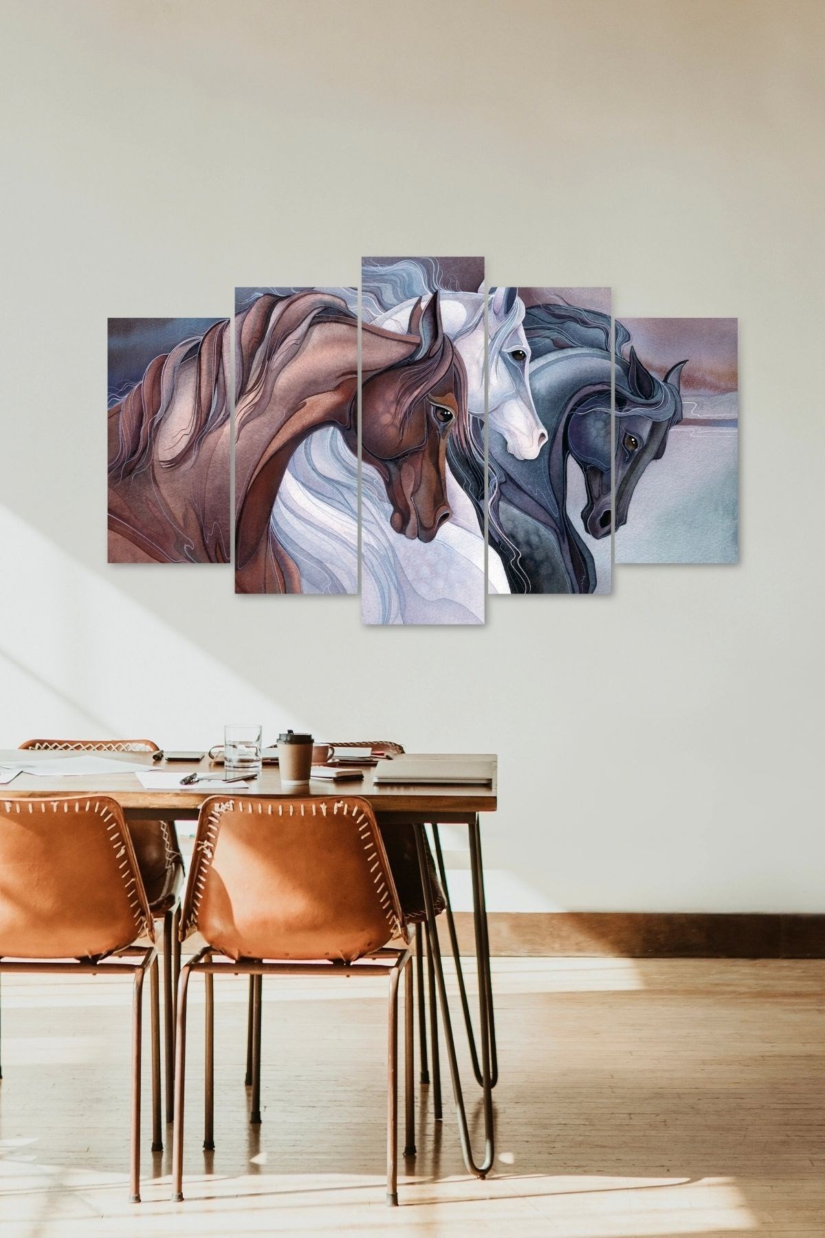- Modern dekorasyonun vazgeçilmez bir parçası olan bu 5 parçalı ahşap tablo, mekanınıza şıklık ve sıcaklık katar; - Dayanıklı MDF malzemesi ile uzun ömürlü kullanım sunar ve kolay temizlenebilir yüzeyi sayesinde pratik bir bakım imkanı sağlar; - Her bir parçada detaylı işçilikle işlenmiş at temalı tasarım, evinizin veya ofisinizin atmosferini zenginleştirir; - Modern stil sahibi olan bu tablo, çağdaş yaşam alanlarına uyum sağlayarak estetik bir görünüm sunar;