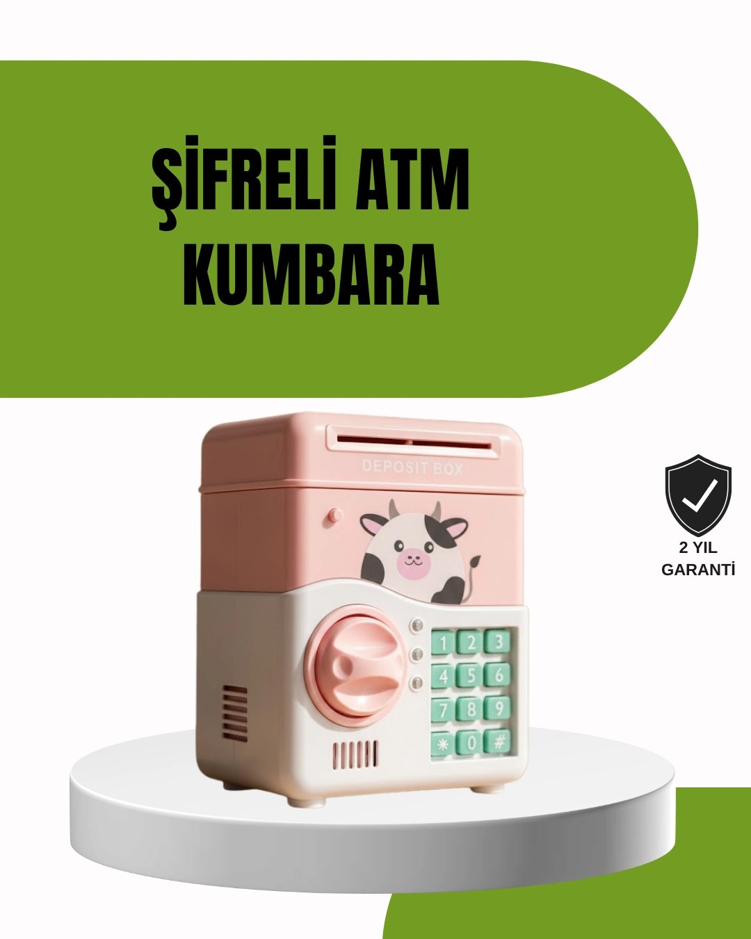 Atm Tasarımlı Pembe Işıklı Sesli Çocuk Kumbarası