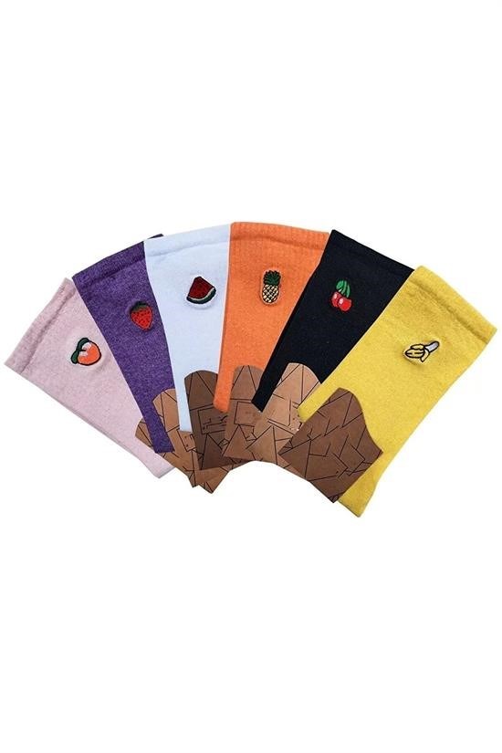6lı Unisex Meyveli Soket Çorap Pamuklu 42-46