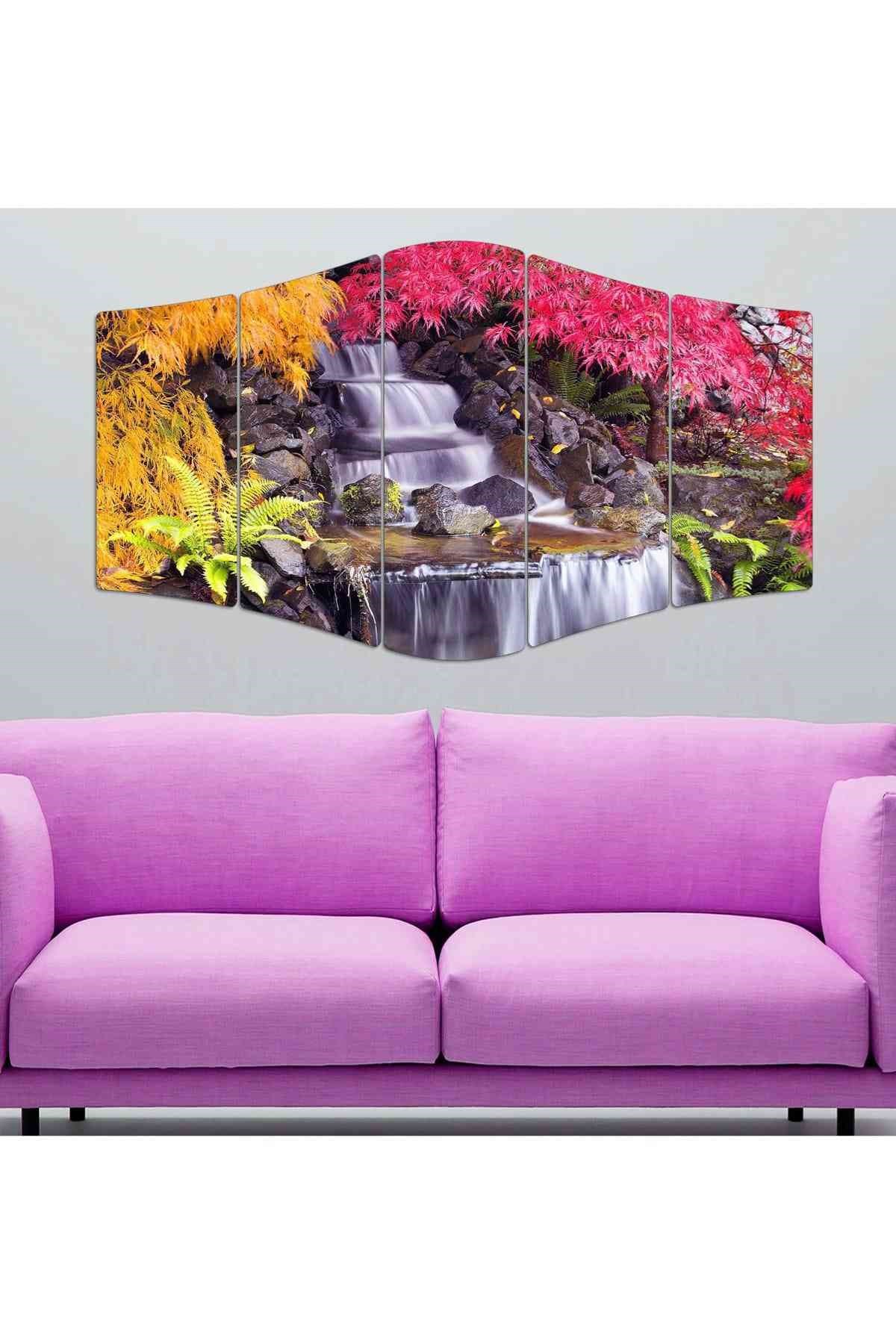 Beş parçalı dekoratif 60x100cm tablo Lazer kesim ve dijital baskı tekniği ile MDF malzeme üzerine üretilmiştir Kanserojen madde içermeyen boyalar kullanılmıştır Çift taraflı bant ile birlikte duvara yapıştırılarak uygulanır