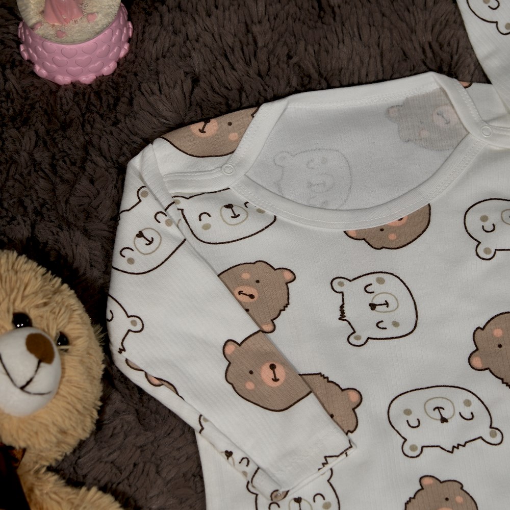 Sıcak tutma: Ayıcık Desenli Zıbın Body, bebeğin vücut ısısını koruyarak onu soğuktan korur.