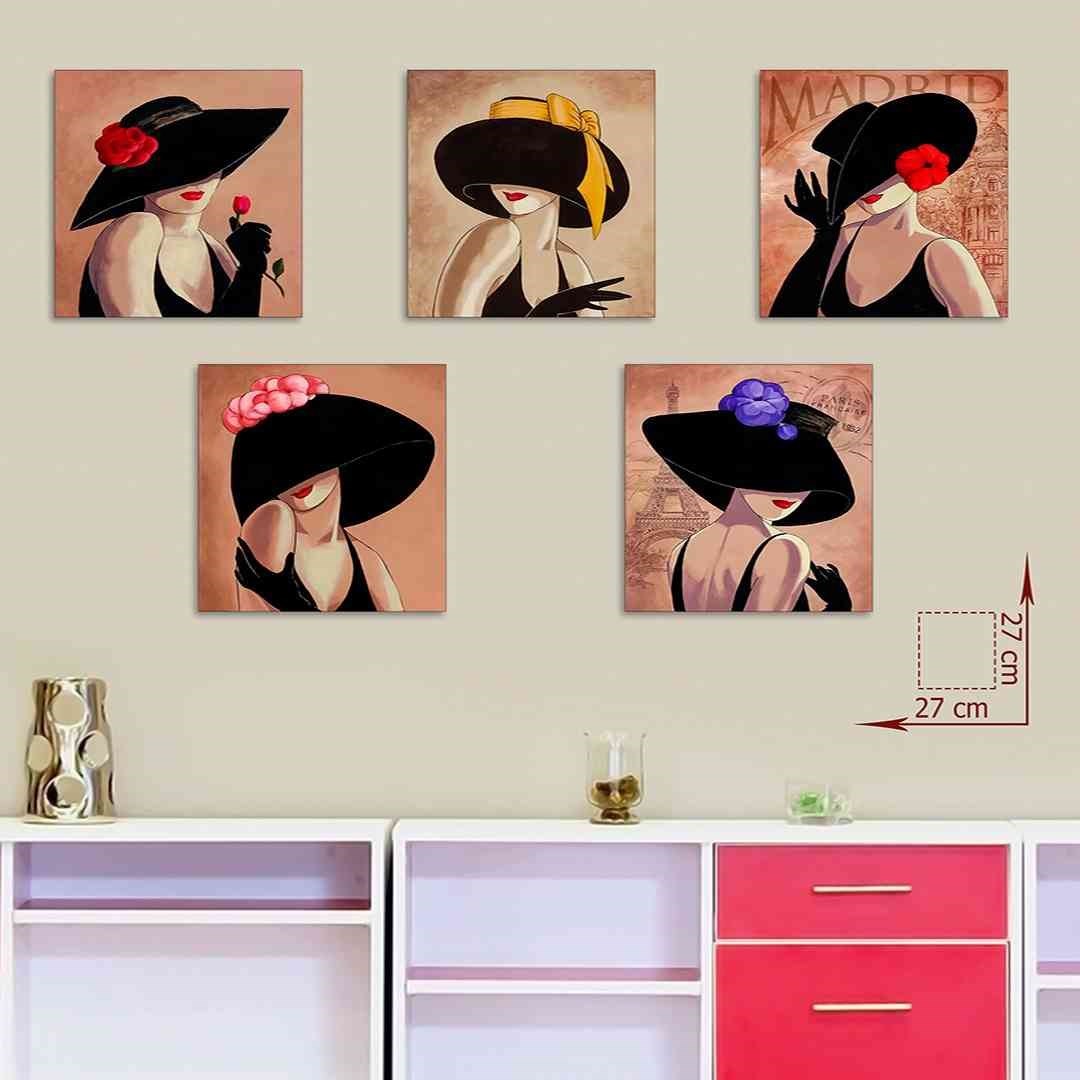 5 Parça Şapkalı Kadın Mdf Tablo - T-5K-24 27X27