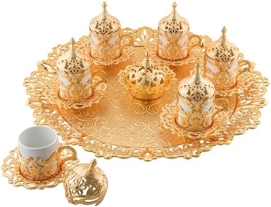 6 (Altın) İçin Motif Yuvarlak Kahve Seti - 26435