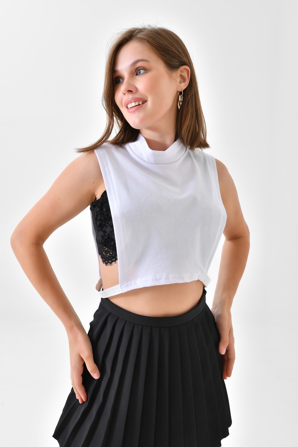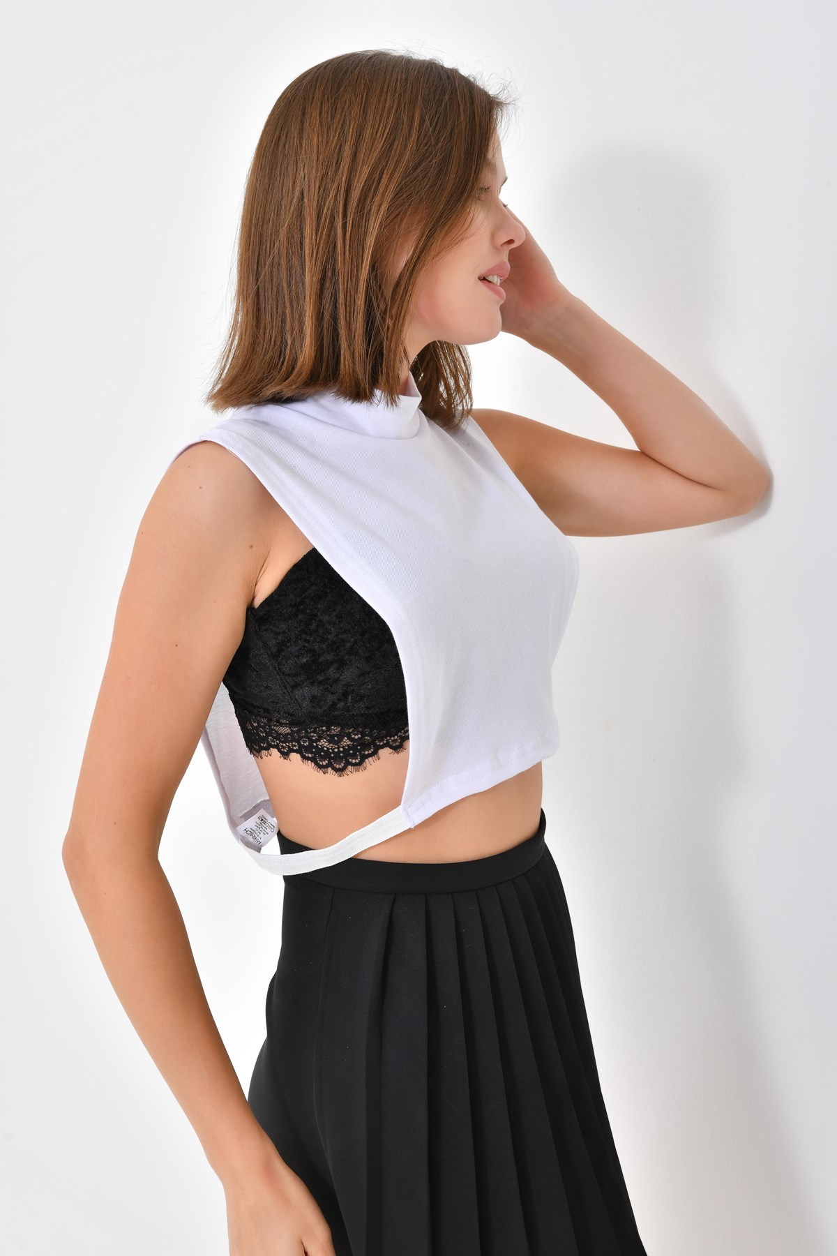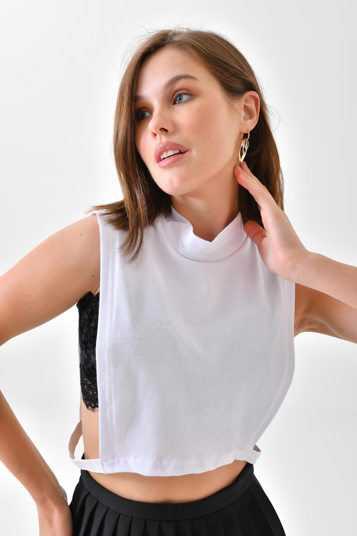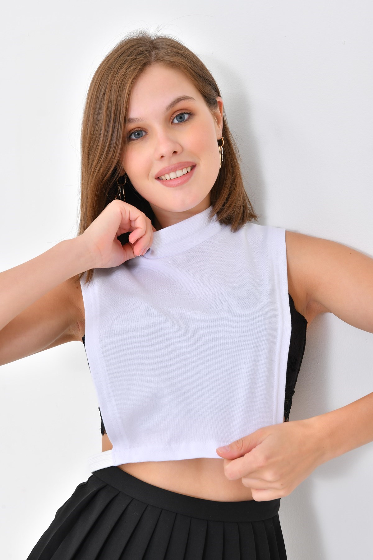 Beyaz Balıkçı Yaka Kolsuz Boyunluk, Tesettür Boyunluk, Tesettür Giyim, Boyunluk, Kolsuz Boyunluk, Boyun Örtüsü