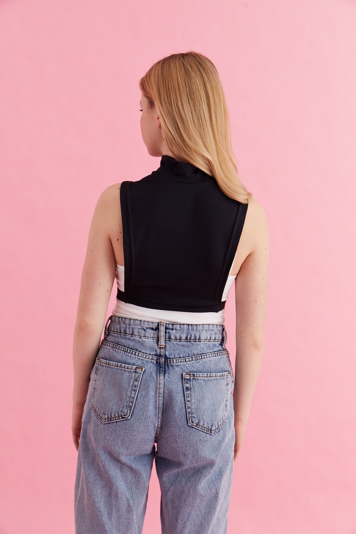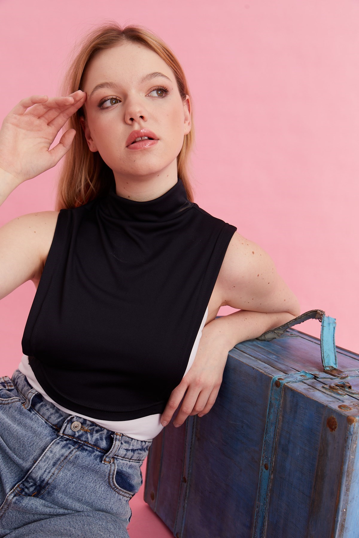 Siyah Balıkçı Yaka Kolsuz Boyunluk, Tesettür Boyunluk, Tesettür Giyim, Boyunluk, Kolsuz Boyunluk, Boyun Örtüsü