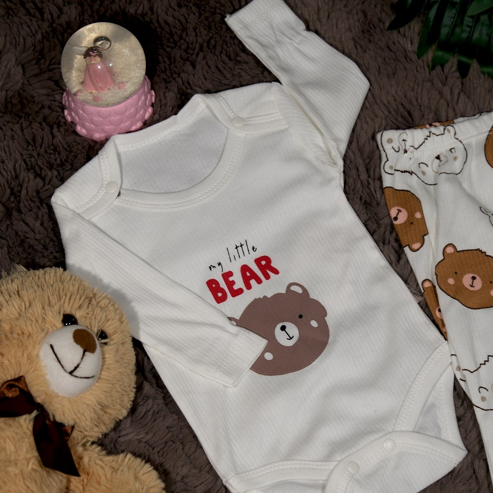 Sıcak tutma: Bear Baskılı İkili Takım, bebeğin vücut ısısını koruyarak onu soğuktan korur.