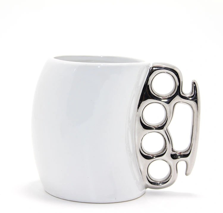 Porselen Muşta Tasarımlı Kupa Bardak Gümüş Renk