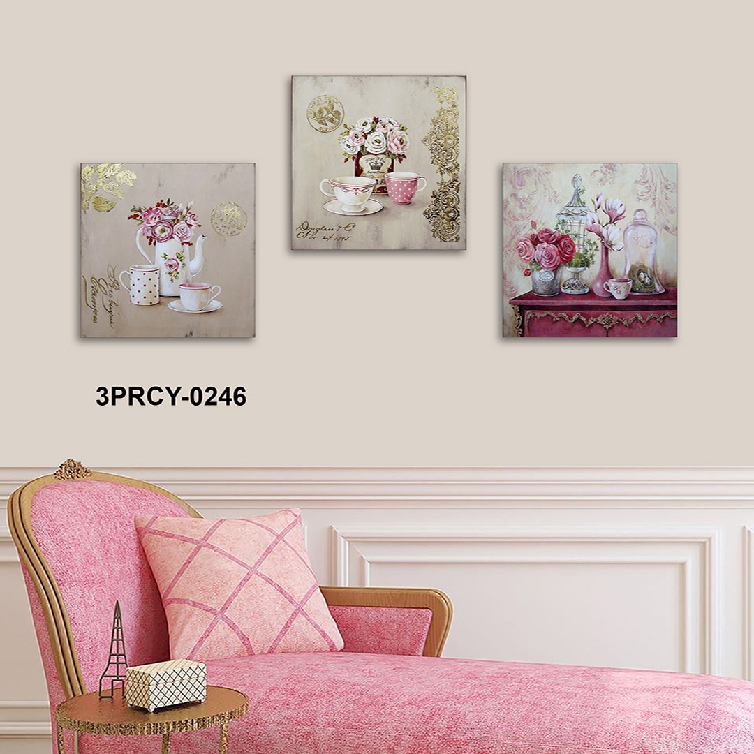 3 Parça Mdf Tablo Dekoratif Çiçekler - T-3Prcy-0246 30X30