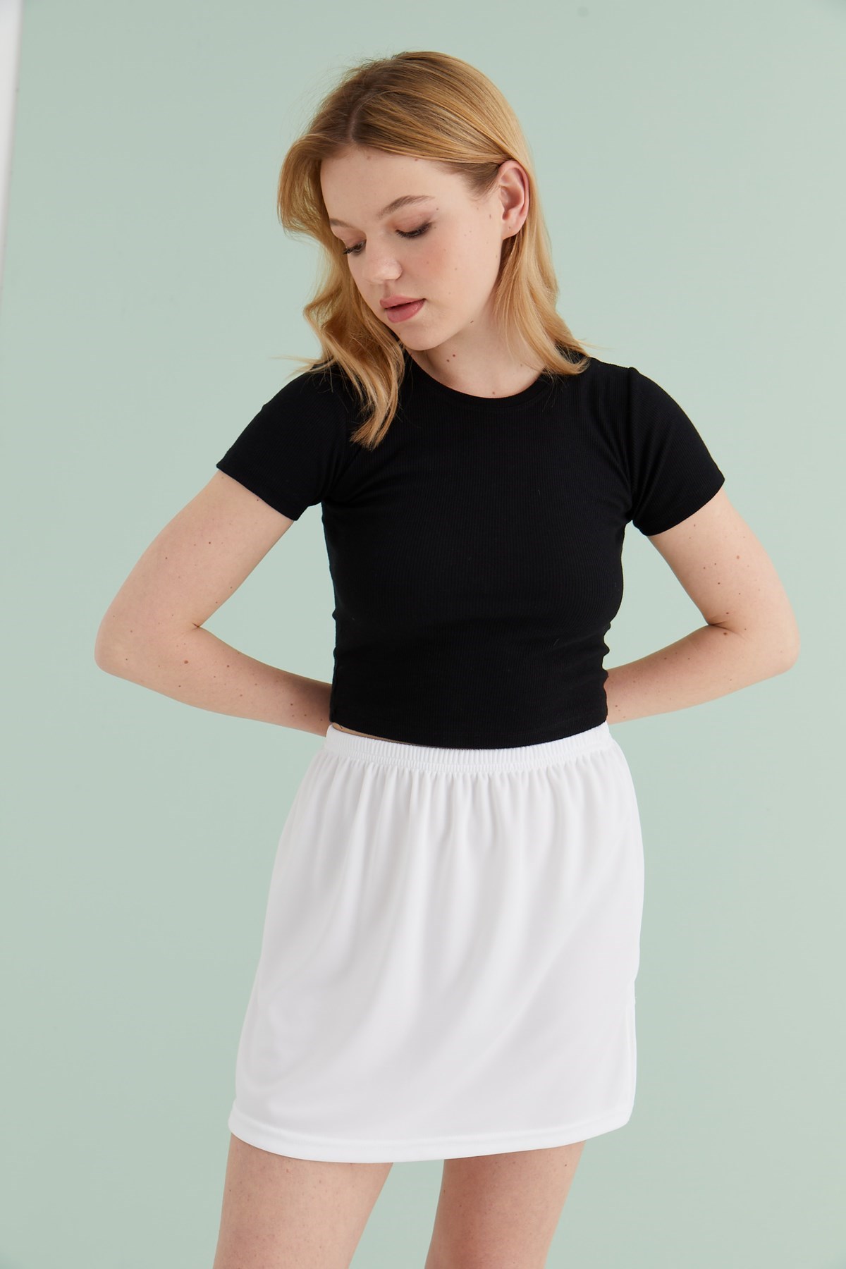 Mirach Textile ile özdeşleşmiş ürünlerinden olan beyaz yırtmaçlı içlik eteği inceleyeceğiniz için teşekkür ederiz. Bu ürün, kaliteli %95 pamuk %5 likra poplin kumaştan üretilmiştir ve dört mevsim kullanımı için uygundur.
