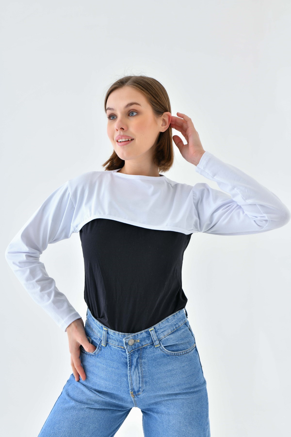 Özellikle tesettürlü kadınların tercih ettiği kollu boyunluk bolero olarak da kullanıma uygundur. Ayrıca kolları ve boynu güneşten korur. Bu ürün boynu ve kolları tamamen kapatacak şekilde tasarlanmıştır. Giysilerin açık kısımlarının kamufle edilmesini kolaylaştırır.
